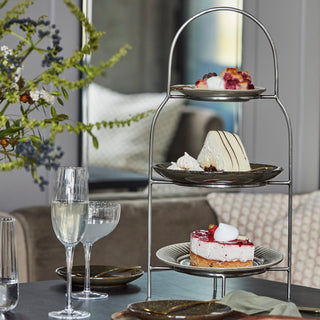 Een elegante keuze hiervoor is de zilverkleurige etagère met één plateau. Deze is compact en toch opvallend, perfect voor kleinere settings of als aanvulling op een grotere presentatie.