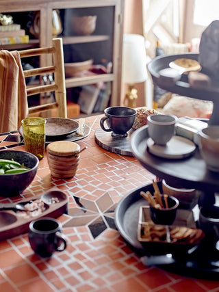 De Bloomingville mokken zijn vervaardigd uit hoogwaardig keramiek met subtiele glazuren in natuurlijke tinten zoals zand, grijs en off-white. De vormen zijn rond en organisch, met een handgemaakt karakter dat elke mok uniek maakt. Texturen variëren van glad tot licht gespikkeld, wat zorgt voor diepte en een ambachtelijke uitstraling. Perfect te combineren met ander Scandinavisch servies voor een samenhangende tafelsetting.