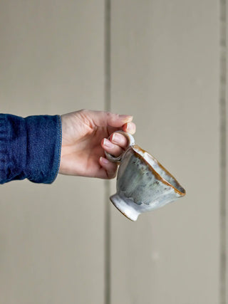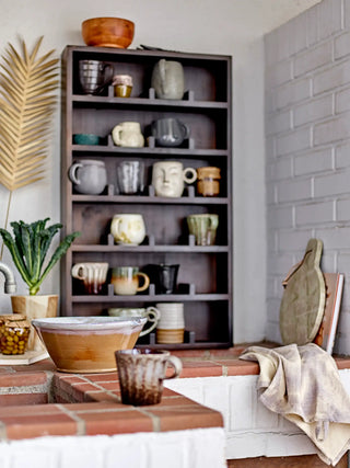 De Bloomingville mokken zijn vervaardigd uit hoogwaardig keramiek met subtiele glazuren in natuurlijke tinten zoals zand, grijs en off-white. De vormen zijn rond en organisch, met een handgemaakt karakter dat elke mok uniek maakt. Texturen variëren van glad tot licht gespikkeld, wat zorgt voor diepte en een ambachtelijke uitstraling. Perfect te combineren met ander Scandinavisch servies voor een samenhangende tafelsetting.