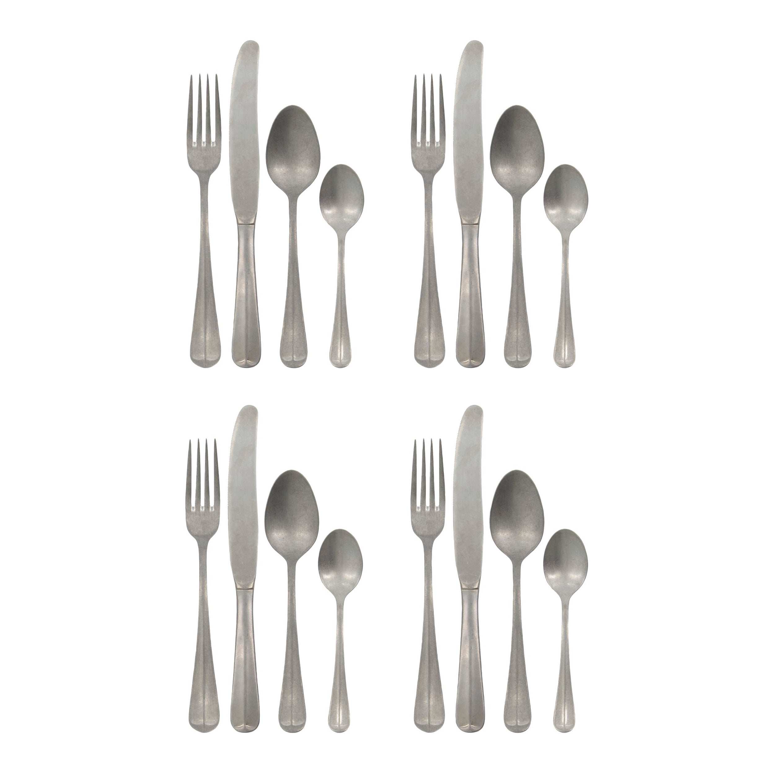 Sættet indeholder 4 knive, 4 gafler, 4 spiseskeer og 4 teskeer – alt hvad du behøver til en komplet borddækning til fire personer. Hvert stykke er fremstillet af højkvalitets rustfrit stål, hvilket gør sættet modstandsdygtigt over for daglig brug og velegnet til opvaskemaskine.