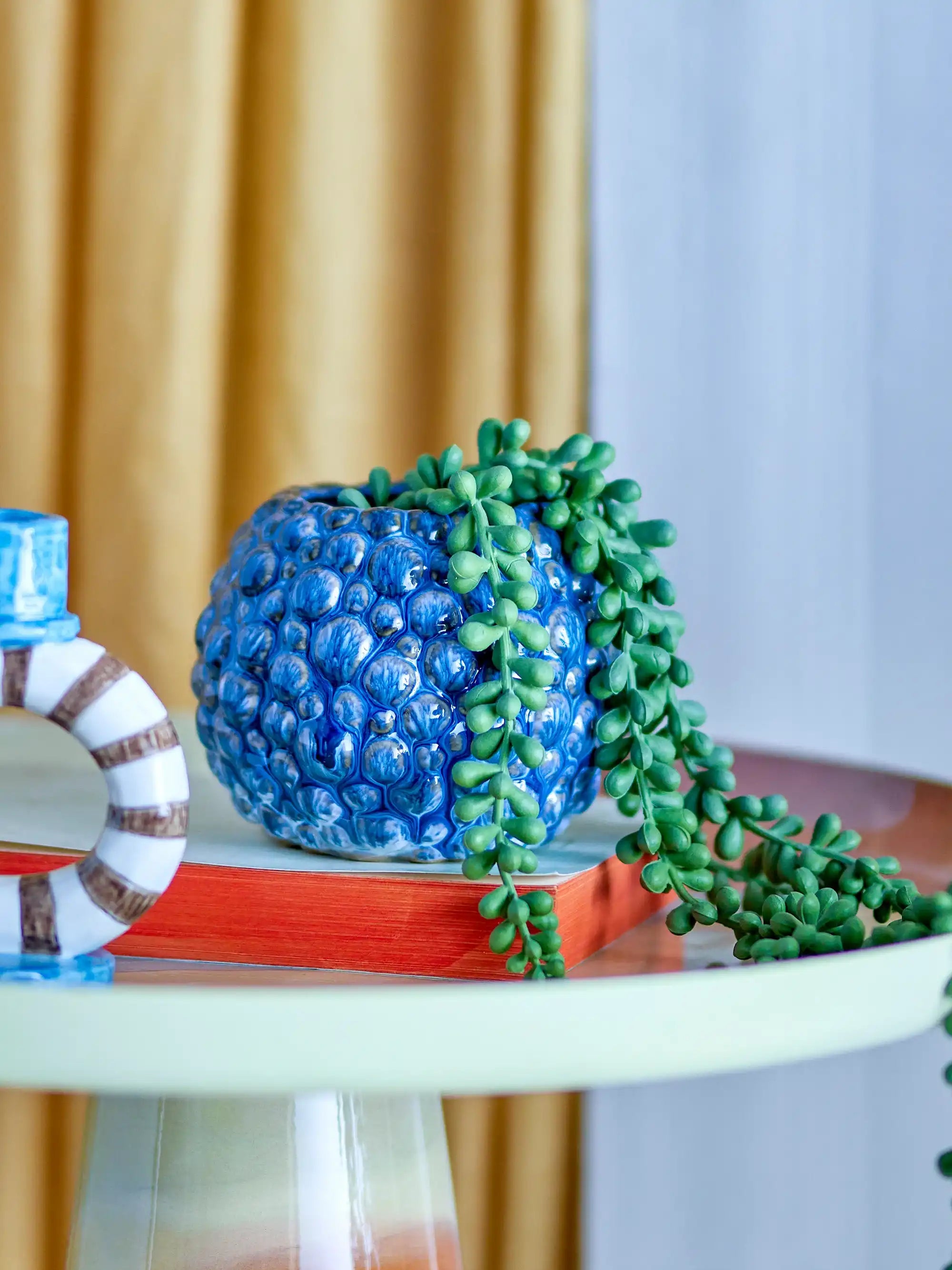 Detaljer & materiale: Susannah urtepotten er fremstillet af robust stentøj og har en unik glasur i forskellige blå nuancer. Med en diameter på 12 cm og en højde på 10 cm er den perfekt til små stueplanter eller krydderurter, og hver potte er lidt forskellig takket være de fine farvenuancer.