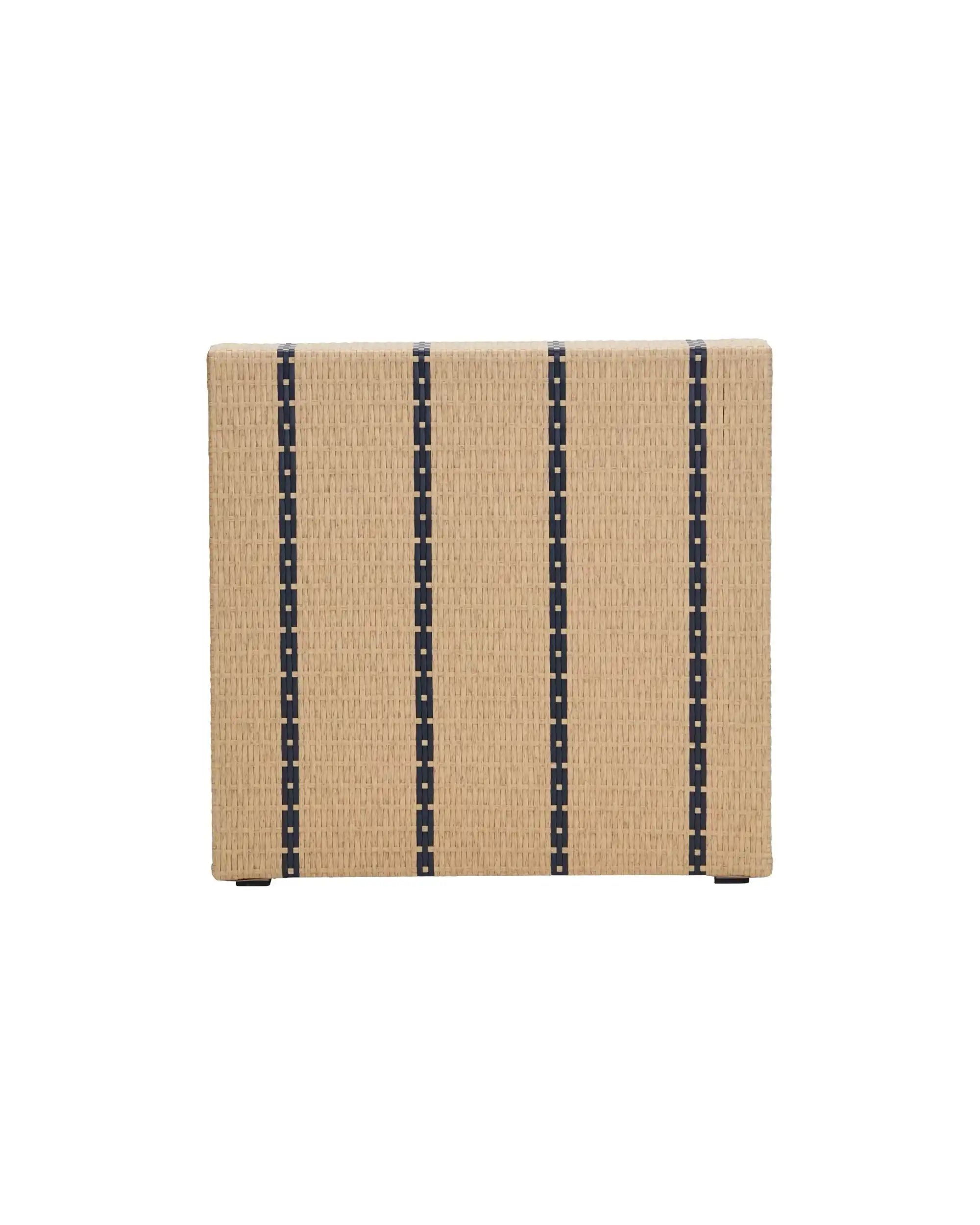 De stoel is vervaardigd uit stevig aluminium, afgewerkt in natuurlijke tinten met diepe zwarte accenten. Het geweven patroon geeft structuur zonder druk te ogen. Dankzij de royale afmetingen van 82 cm breed, 70 cm diep en 68 cm hoog biedt hij een ontspannen zitervaring zonder plompe uitstraling. De stoel is weerbestendig en volledig gemonteerd geleverd — uitpakken en genieten maar.