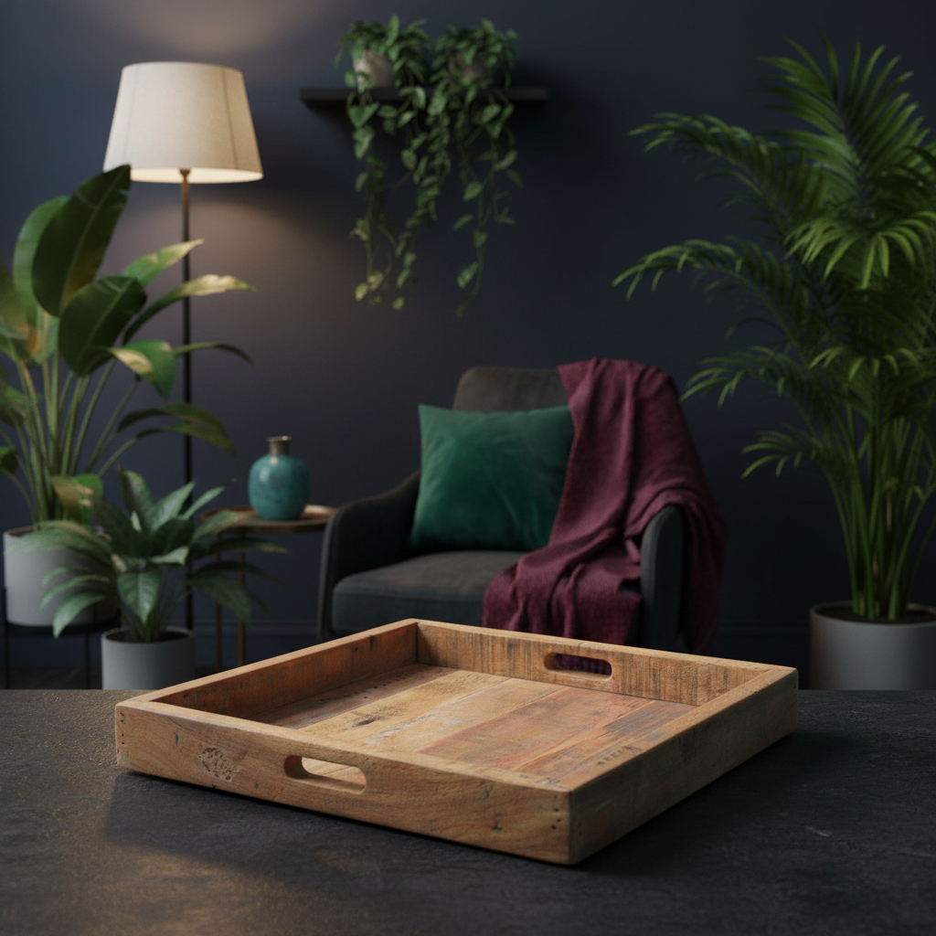 Bring en varm, naturlig stemning ind i dit hjem med Dienblad Rustic Roots 43x43 cm fra House of Nature. Dette serveringsfad er den største variant i en eksklusiv serie med tre størrelser, fremstillet af genbrugstræ. Takket være brugen af genanvendte materialer og håndværk er hvert fad unikt – med sine egne farvenuancer, træstruktur og karakter, så dit fad altid bliver et særligt blikfang.