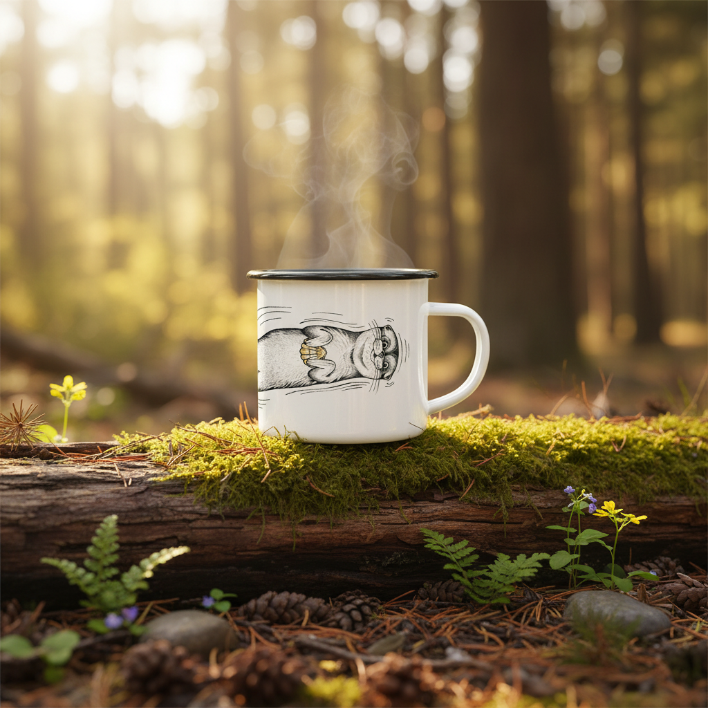Drikker du din kaffe eller te fra nu af af dette super robuste emaljekrus fra Ligarti? Dette krus med et unikt tryk af en odder med en musling er designet og håndlavet af Ligarti i Tyskland. De siger, at krusene er uopslidelige, og fordi de er lette, er de også nemme at tage med på farten.