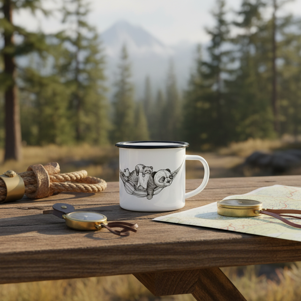 Denne emaljekop er din trofaste følgesvend i afslappende stunder – uanset om du ligger på sofaen, sidder ved skrivebordet eller slapper af i en hængekøje udenfor (ligesom pandaerne). Robust og let, så den er også perfekt til camping eller picnic.
