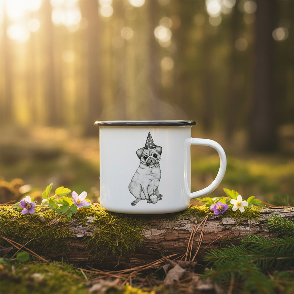 Dette robuste Ligarti krus er lavet af emalje. Med en kapacitet på 500 ml er dette krus også perfekt til en lækker kop suppe eller en morgenmad med yoghurt. Fra nu af kan du spise og drikke af dette utroligt holdbare krus, som næsten er uopslideligt. Krusene med et tryk af en mops er håndlavede og designet i Tyskland. De siger, at krusene er uopslidelige, og fordi de er lette, er de også nemme at tage med på farten.