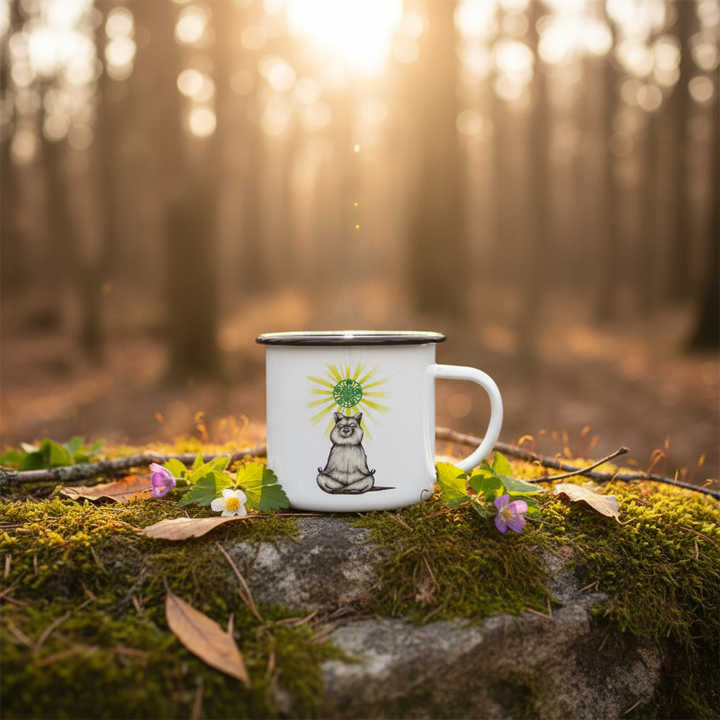 Håndlavet emaljekrus Yogabeer 300ml
