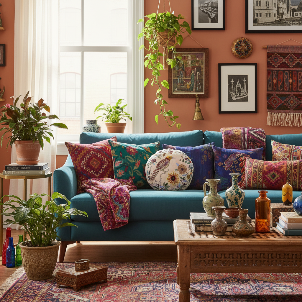 Kussen Landeck passer nemt ind i både et boheme- og landligt interiør og kombinerer smukt med andre puder fra samme serie.