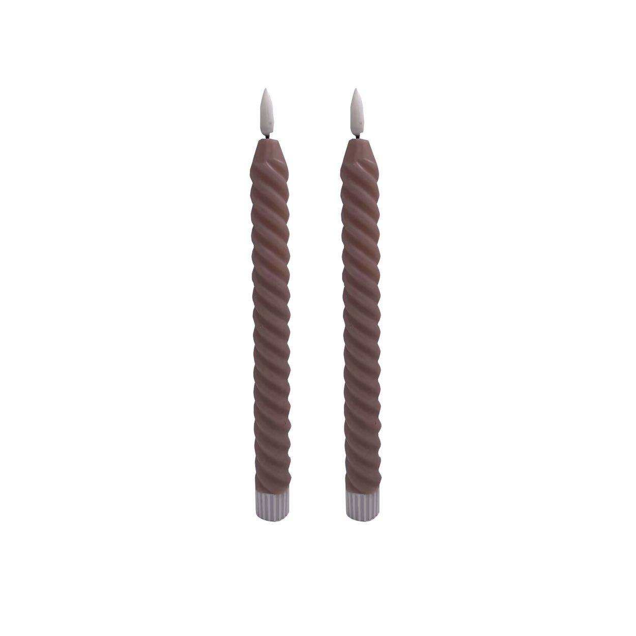 Disse brune swirl LED-lys passer perfekt i en samling af forskellige lysestager på et dækket spisebord. Kombinér dem med naturlige materialer som træ og glas for et rustikt look. De er også ideelle på et sidebord eller i en pejs, du ønsker at dekorere uden ild. Den varme brune farve skaber en naturlig balance og kan smukt kombineres med andre jordfarver og tilbehør.