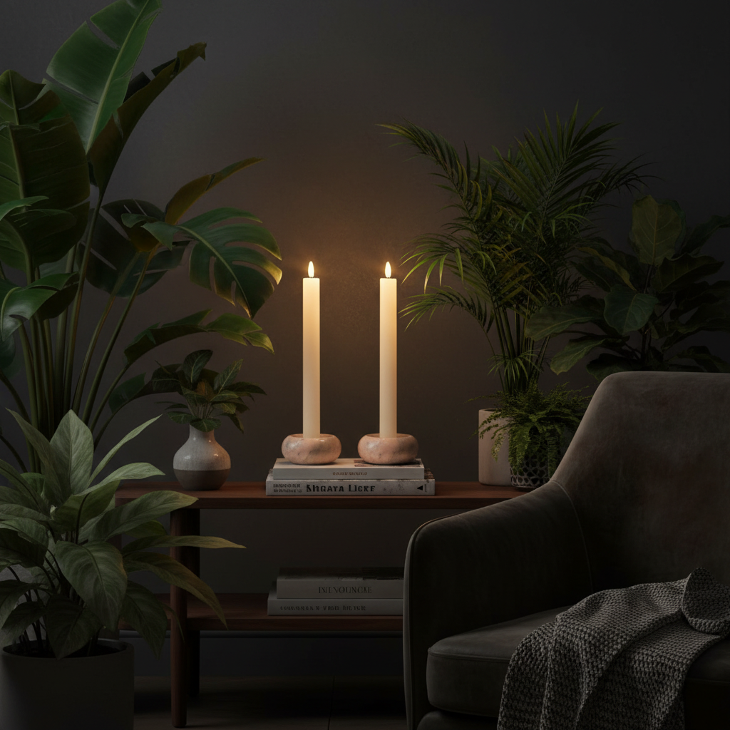 Disse stilfulde LED-dinnerlys skaber straks hygge i hjemmet og kan bruges igen og igen – ideelle til en stemningsfuld middag eller en hyggelig aften på sofaen.