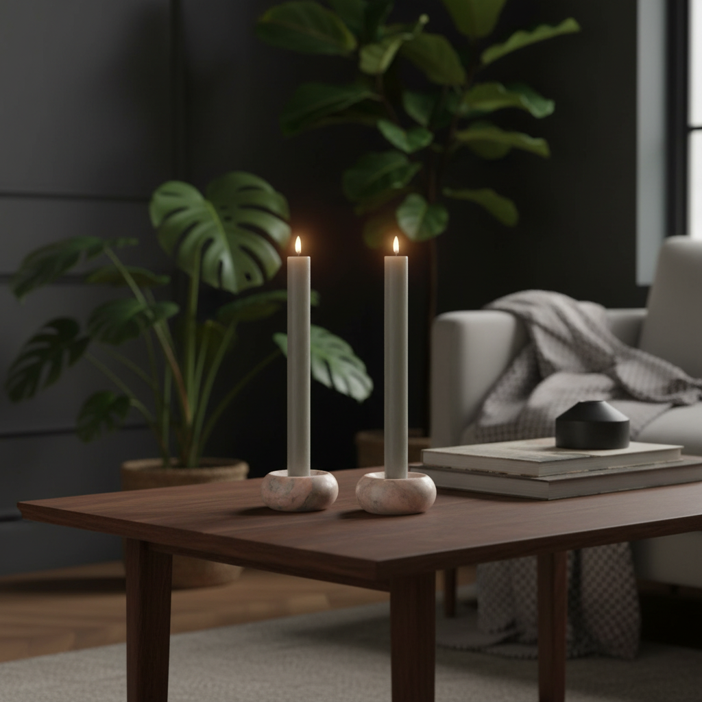 Bring subtil elegance og varme ind i hjemmet med dette sæt af 2 LED-dinerlys fra House of Nature i en stilfuld beige-grøn nuance. Den naturlige farve giver et roligt, moderne udtryk, der smukt matcher jordtoner og naturlige materialer. Lysene er lavet af ægte stearin og har en realistisk, flakkende LED-flamme, så du kan nyde den hyggelige stemning fra levende lys – uden røg, sod eller brandfare.