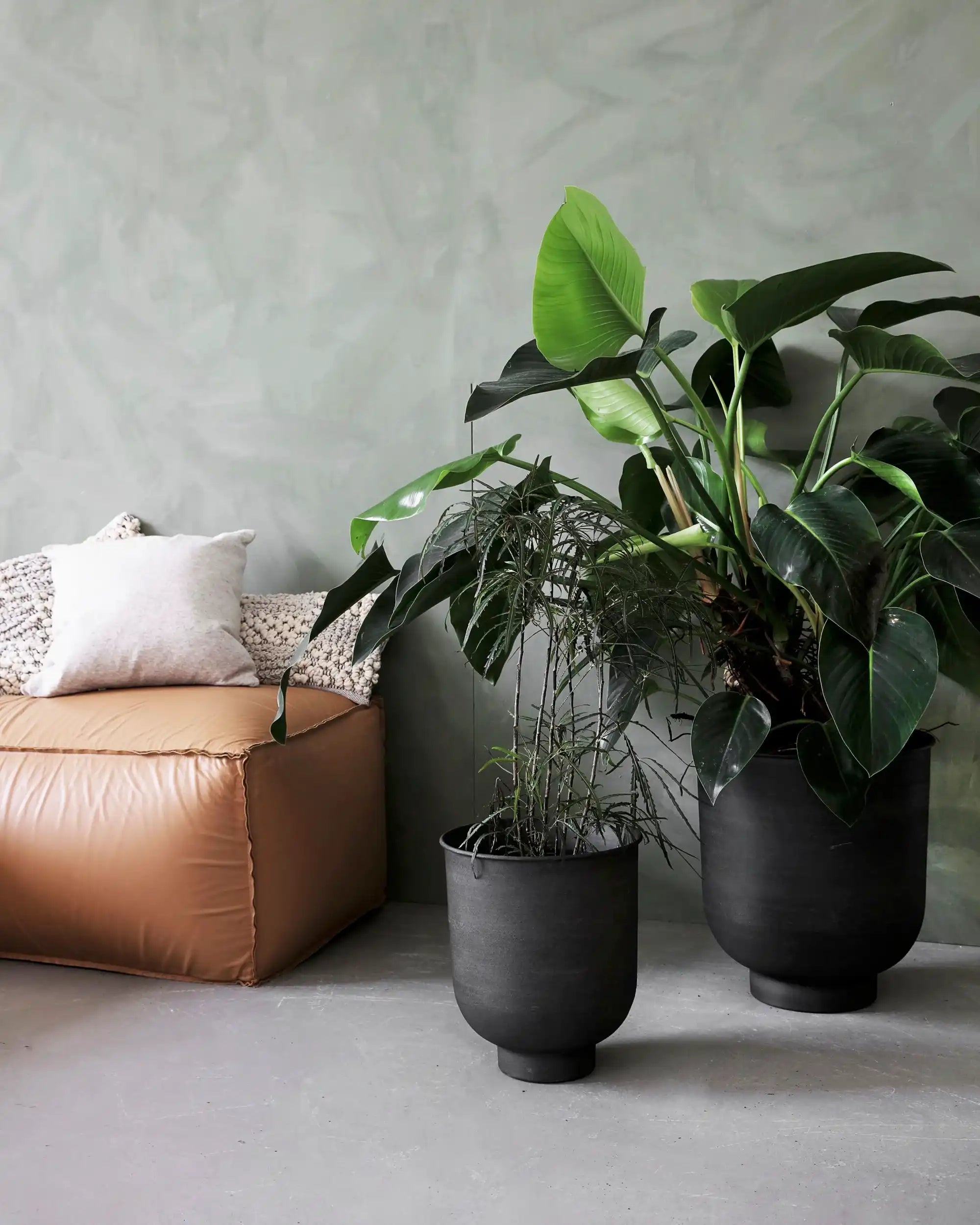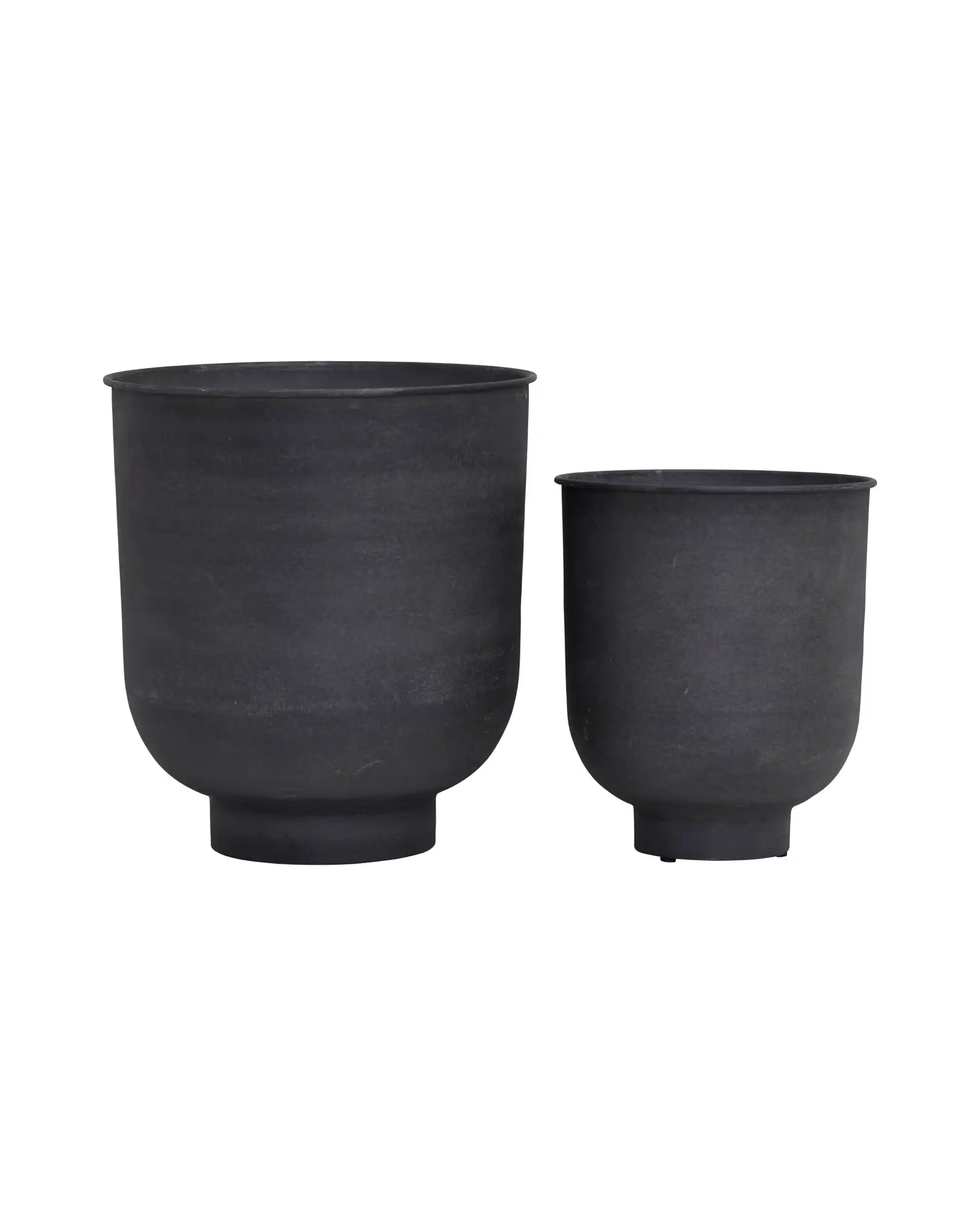 Vig urtepotterne fra House Doctor er lavet af holdbart jern og har et diskret industrielt udtryk. Placer dem i din stue, entré eller på kontoret – den mørke, næsten sorte nuance skaber en moderne kontrast til det friske grønne fra dine yndlingsplanter. Det solide materiale gør potterne ideelle til både store og små planter.