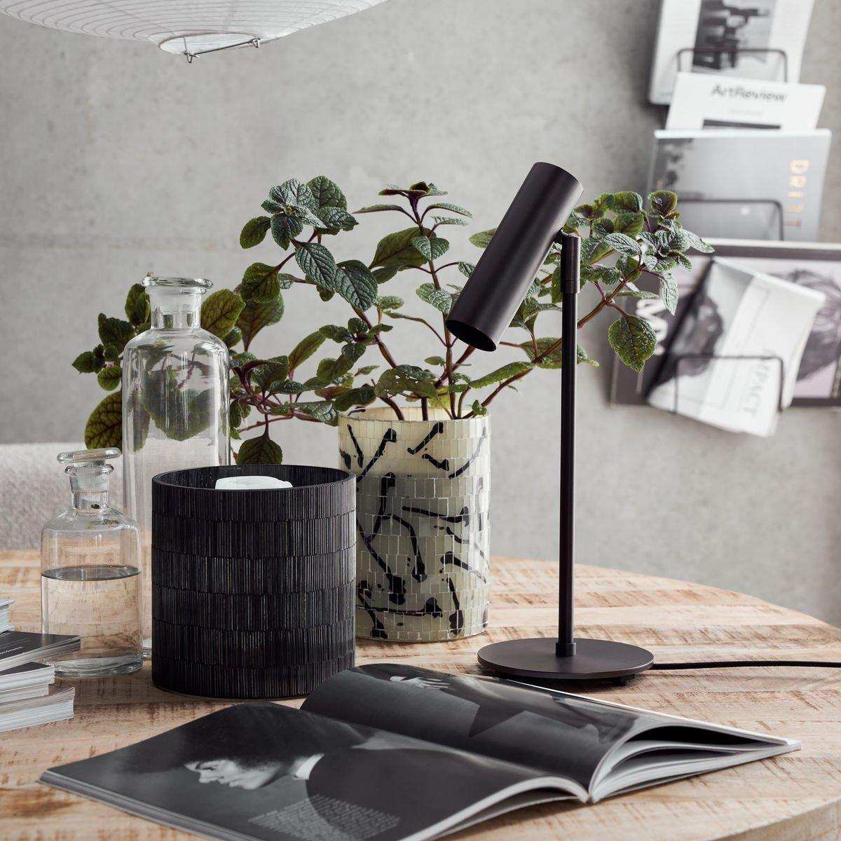 Berig dit interiør med den subtile elegance fra House Doctor bordlampen Norm i sort antik. Denne bordlampe, med en højde på 38,4 cm og en diameter på 14 cm, er indbegrebet af minimalistisk og moderne stil. Lampen kombinerer rene linjer og en dybsort finish for at skabe en følelse af strømlinet funktionalitet. Denne lampe er ikke kun en lyskilde, men også et stilfuldt dekorativt element. Det unikke ved denne lampe er den justerbare lampeskærm, så du kan rette lyset præcis derhen, hvor du har brug for det – uanset om det er til at læse en bog eller arbejde sent om aftenen. Hvert eneste detalje i det enkle design er funktionelt og fremhæver materialets industrielle skønhed.