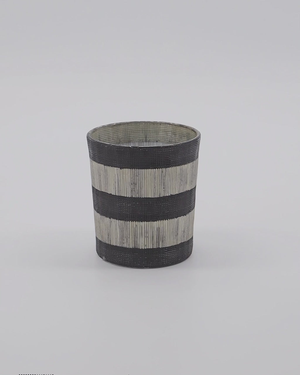 Bring varme og stil ind i dit hjem med Theelichthouder Stripe i sort og brækket hvid. Det iøjnefaldende stribede mønster og det særlige samspil mellem rå og glatte teksturer gør dette tilbehør til en ægte stemningsskaber på bordet, vindueskarmen eller kommoden. Den robuste form giver karakter til enhver indretning og fanger straks opmærksomheden, når du træder ind.