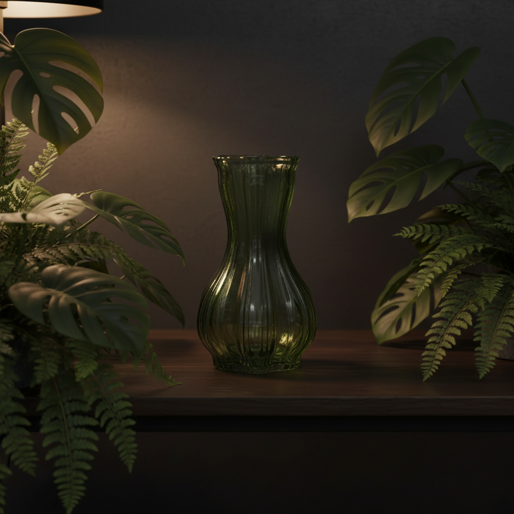 Indretningstip: Kombinér den antikgrønne Flin Fion vase med andre glasaccessories i naturlige nuancer for et harmonisk udtryk.