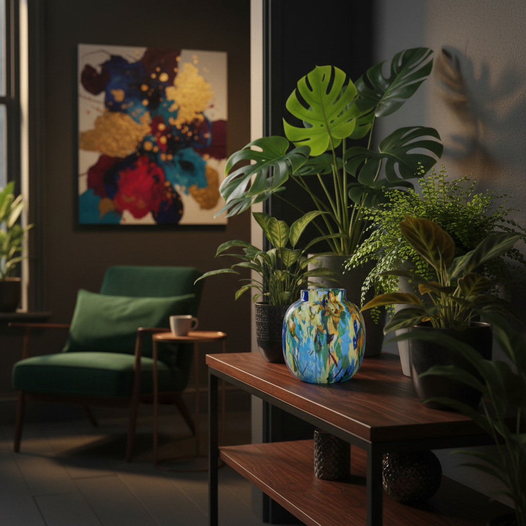 Francis Sling er en autodidakt kunstner med en passion for visuel poesi. Hans værker fortæller historier om kultur, natur og menneskelighed – og det afspejles i denne unikke vase. Et funktionelt boligtilbehør, der føles som et lille stykke caribisk kunst.