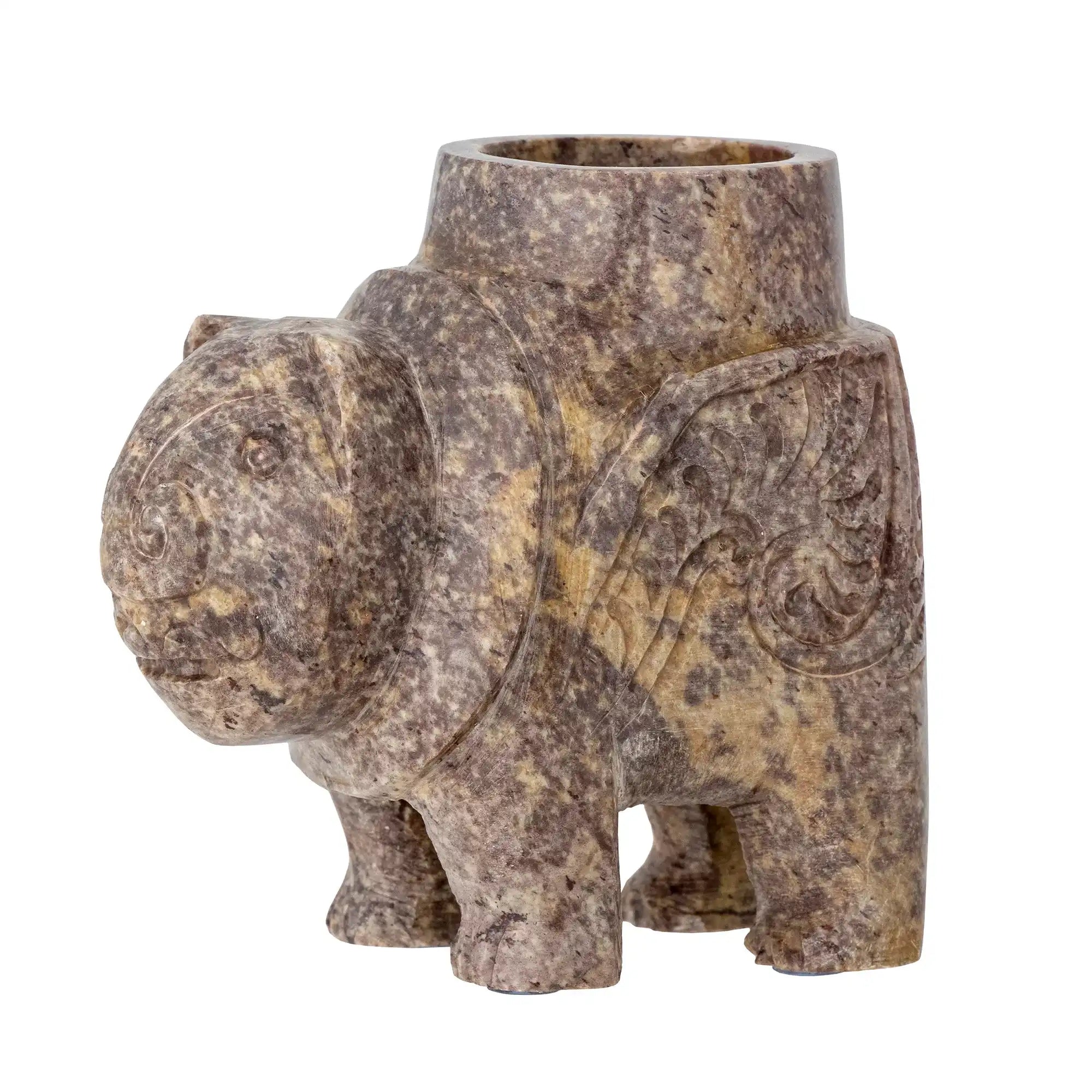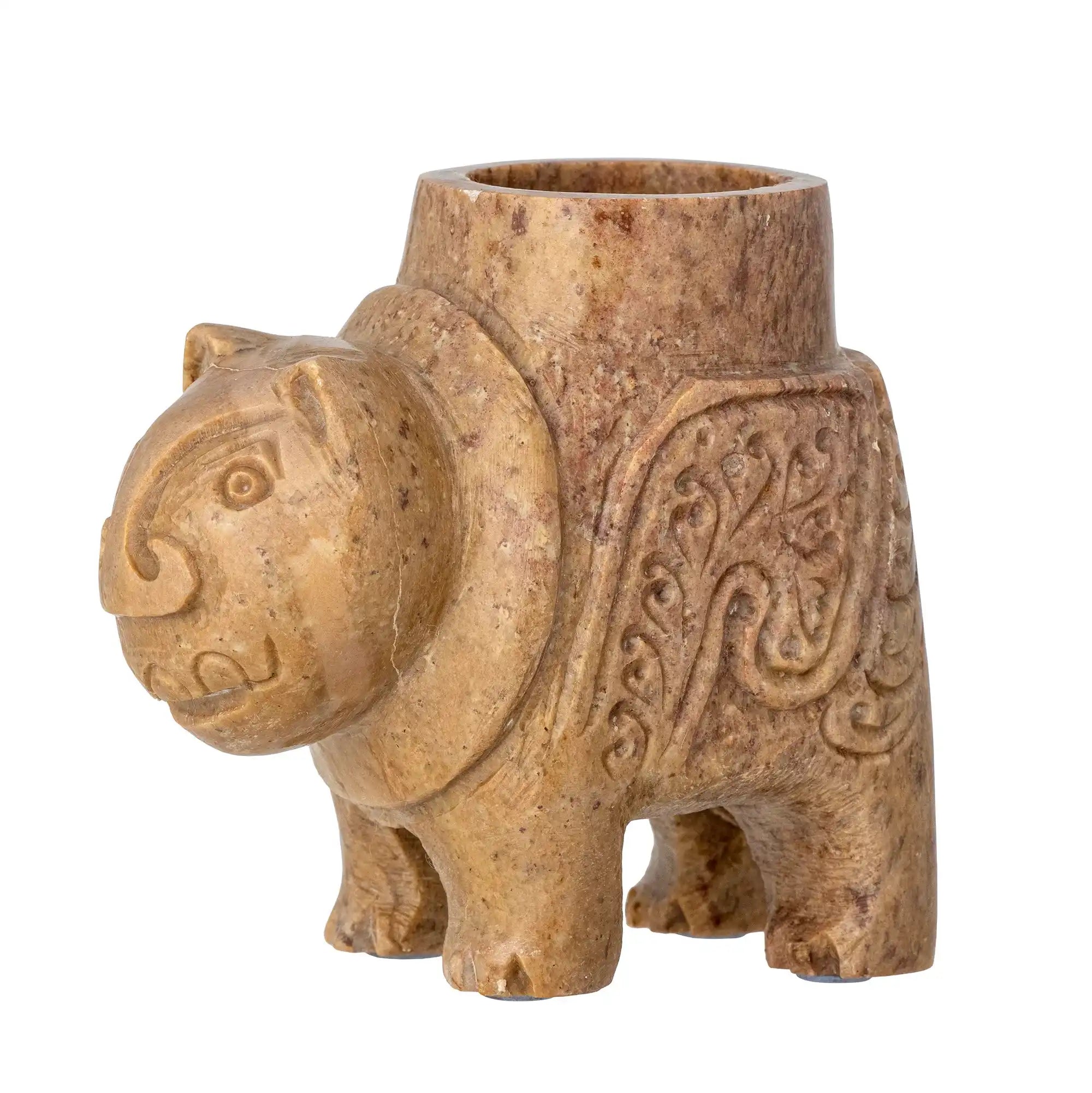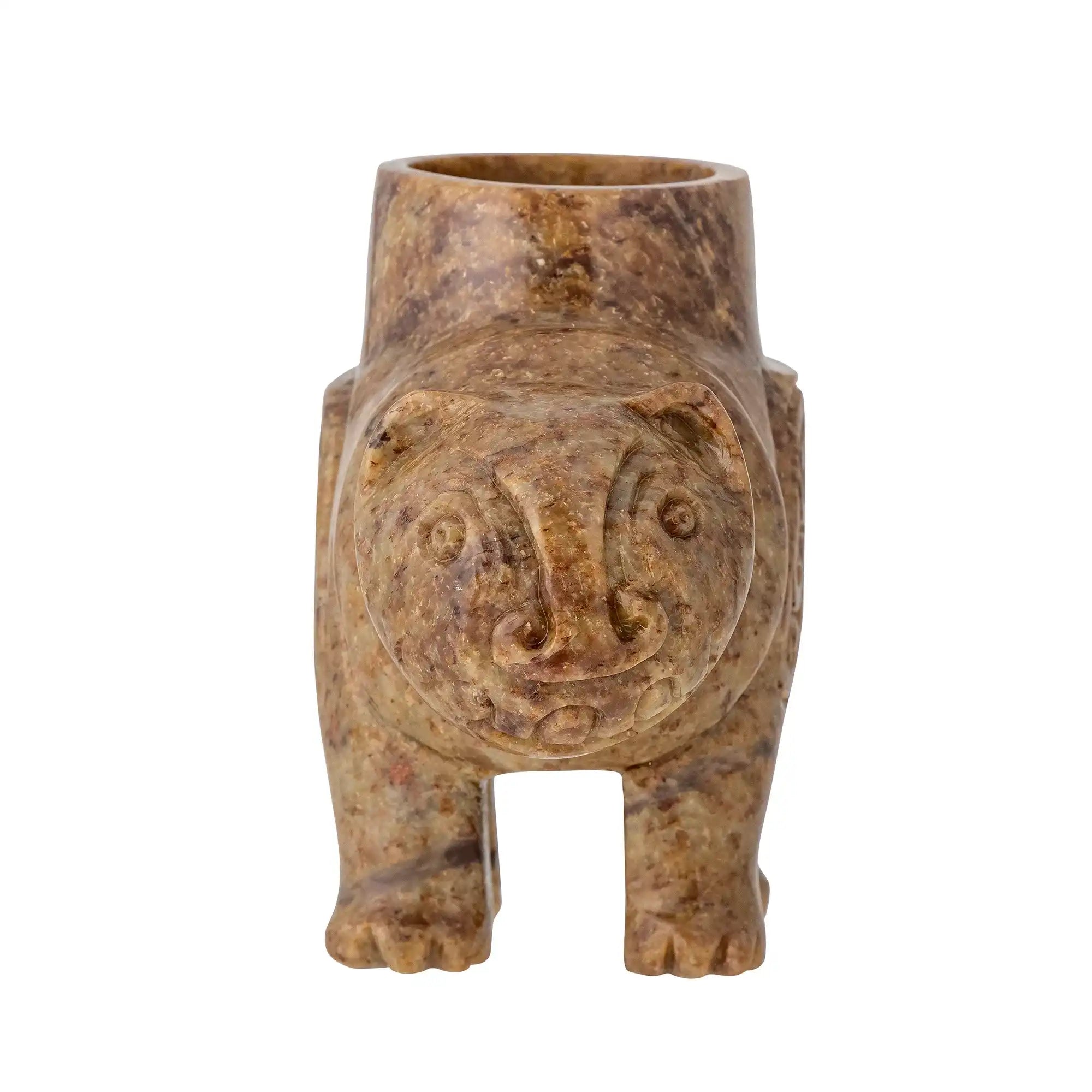 Unik natursten, tidløst design: Denne stilfulde fyrfadsstage er omhyggeligt fremstillet af brun fedtsten med flotte nuancer og linjer, formet af naturen selv. Med de kompakte mål på 6 x 10 x 10 cm passer den nemt på en skænk, et sidebord eller i vindueskarmen, og den kan let kombineres med andre boligaccessories.