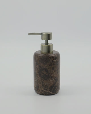Tilføj et strejf af luksus til dit hjem med Zeepdispenser Able i dybbrun marmor. Denne stilfulde sæbedispenser er fremstillet af ægte marmor, så hvert stykke har sit eget unikke mønster. Den matte gyldne pumpe skaber en elegant kontrast og gør dette funktionelle tilbehør til et diskret blikfang på dit badeværelse, toilet eller i køkkenet. Perfekt til flydende sæbe, håndlotion eller opvaskemiddel – elegance findes i detaljerne.