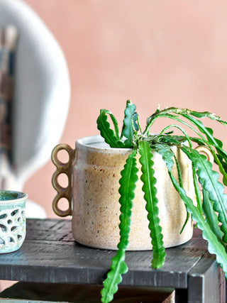 Töpfe und Vasen gibt es in verschiedenen Formen und Größen. Überlege dir gut, wo du den Topf oder die Vase platzieren möchtest, bevor du sie kaufst. Eine Vase auf dem Tisch ist zum Beispiel ein echter Hingucker, kommt aber erst in einer schönen, großen Größe richtig zur Geltung. Hast du etwas weniger Platz, zum Beispiel auf einem Wandregal? Dann wähle eine kleinere Vase. Vergiss nicht, dass kleine Töpfe und Väschen auch sehr schön wirken, wenn du sie miteinander kombinierst. Achte darauf, dass die Farben und Formen gut zum Rest deiner Einrichtung passen. Sind die Farben in deinem Zuhause eher neutral? Dann entscheide dich für einen farbenfrohen Topf oder eine House Doctor Vase – sie wird garantiert zum strahlenden Blickfang!