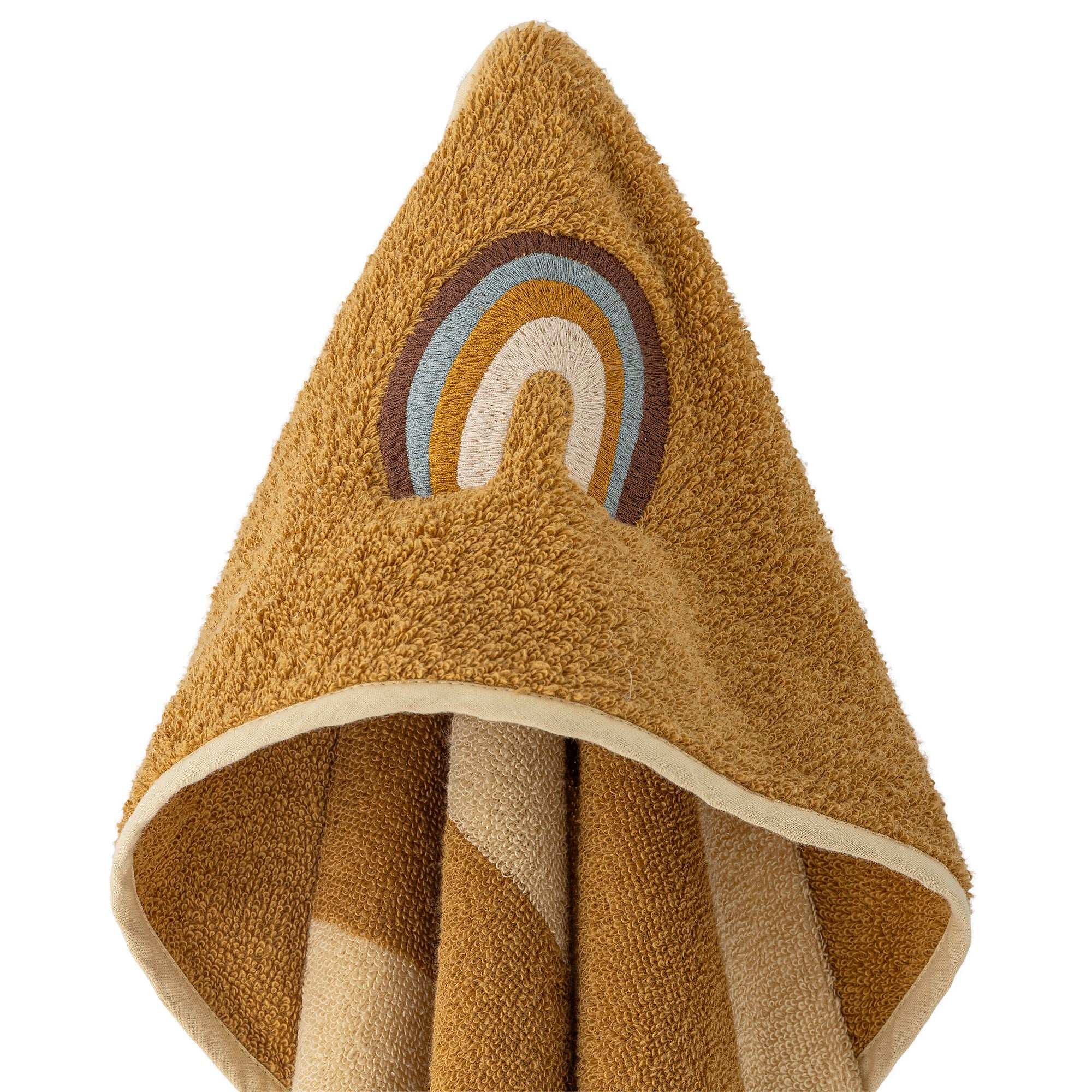 Warum du dieses Badetuch von BLOOMINGVILLE MINI lieben wirst: Das Agnes Badetuch ist perfekt, um dein Kleines nach dem Baden schön warm einzuwickeln. Die braunen Streifen und die Kapuze mit einer süßen, gestickten Regenbogen sorgen für eine gemütliche, angenehme Atmosphäre im Badezimmer. Die Baumwolle ist OEKO-TEX® zertifiziert und damit wunderbar weich zur empfindlichen Babyhaut. Auch toll als Geschenk zur Geburt oder Taufe – praktisch und schön!