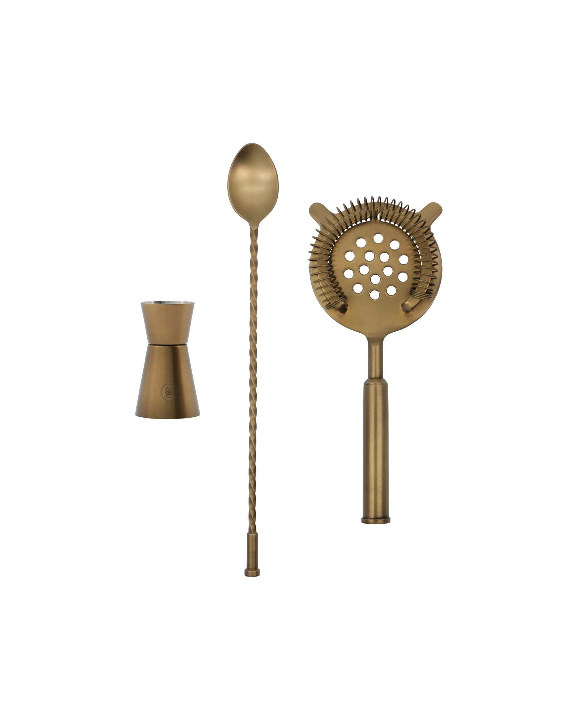 Das Set besteht aus drei unverzichtbaren Tools: einem Messbecher, einem Sieb und einem Rührstab. Zusammen bilden sie die perfekte Grundlage, um deine Lieblingscocktails professionell zuzubereiten und zu servieren. Dank der hochwertigen Verarbeitung ist dieses Set nicht nur funktional, sondern auch ein dekoratives Highlight auf deiner Bar oder Kücheninsel.