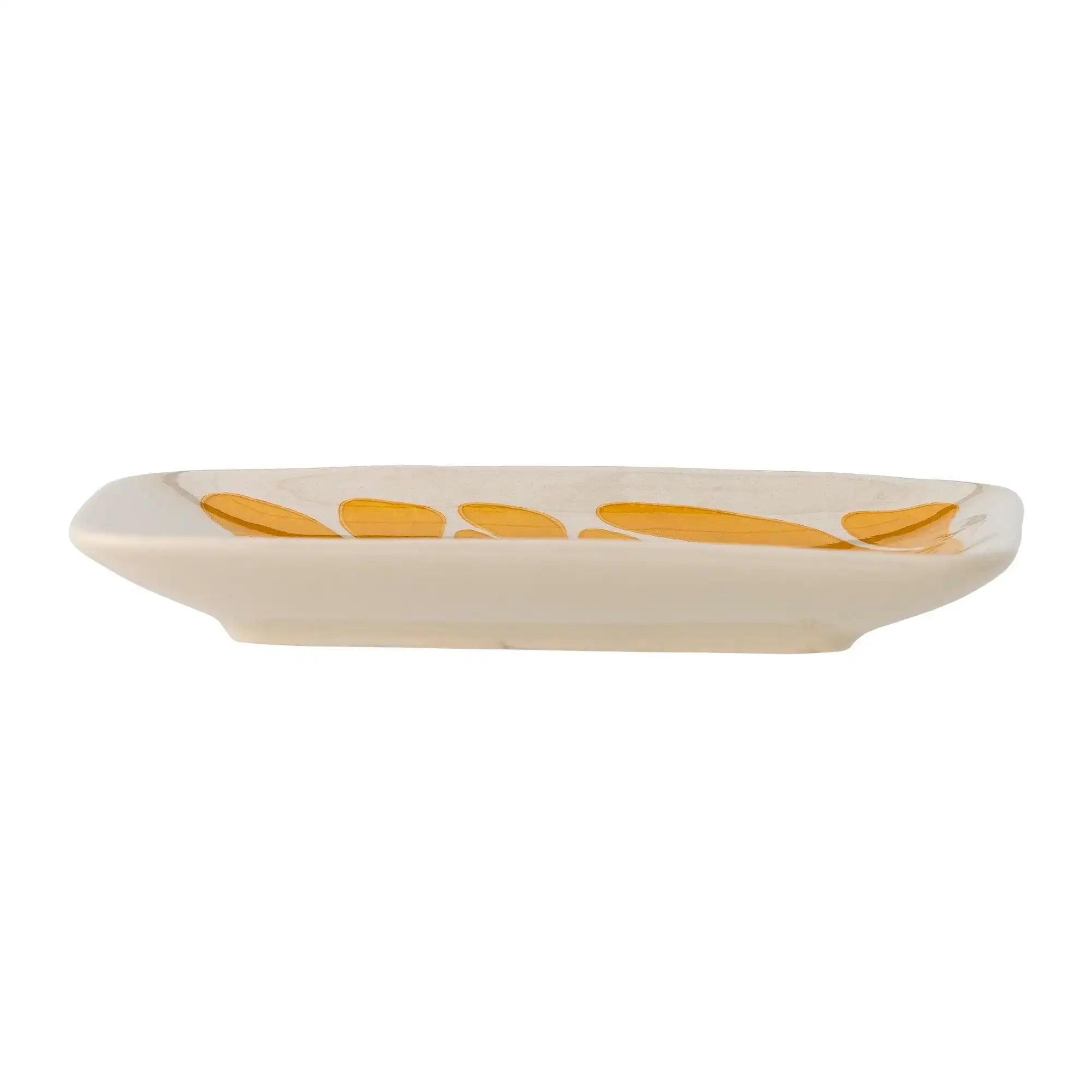 Warum du diesen Teller von Bloomingville haben möchtest: Entdecke Fauni: ein raffiniertes Steingut-Tellerchen, das deinem Tag Wärme verleiht. Das handgemalte, sonnengelbe Pflanzenmotiv hebt sich frisch vom hellen Grund ab und macht jedes Stück einzigartig. Dank des kompakten, rechteckigen Formats hast du ihn schnell zur Hand für einen spontanen Serviermoment oder gibst deinen Lieblingsschmuckstücken einen festen Platz. Mit der vertrauten Signatur von Bloomingville holst du dir skandinavische Schlichtheit mit verspielten Details ins Haus – ein dezenter Akzent, der sich mühelos deinem Stil anpasst.