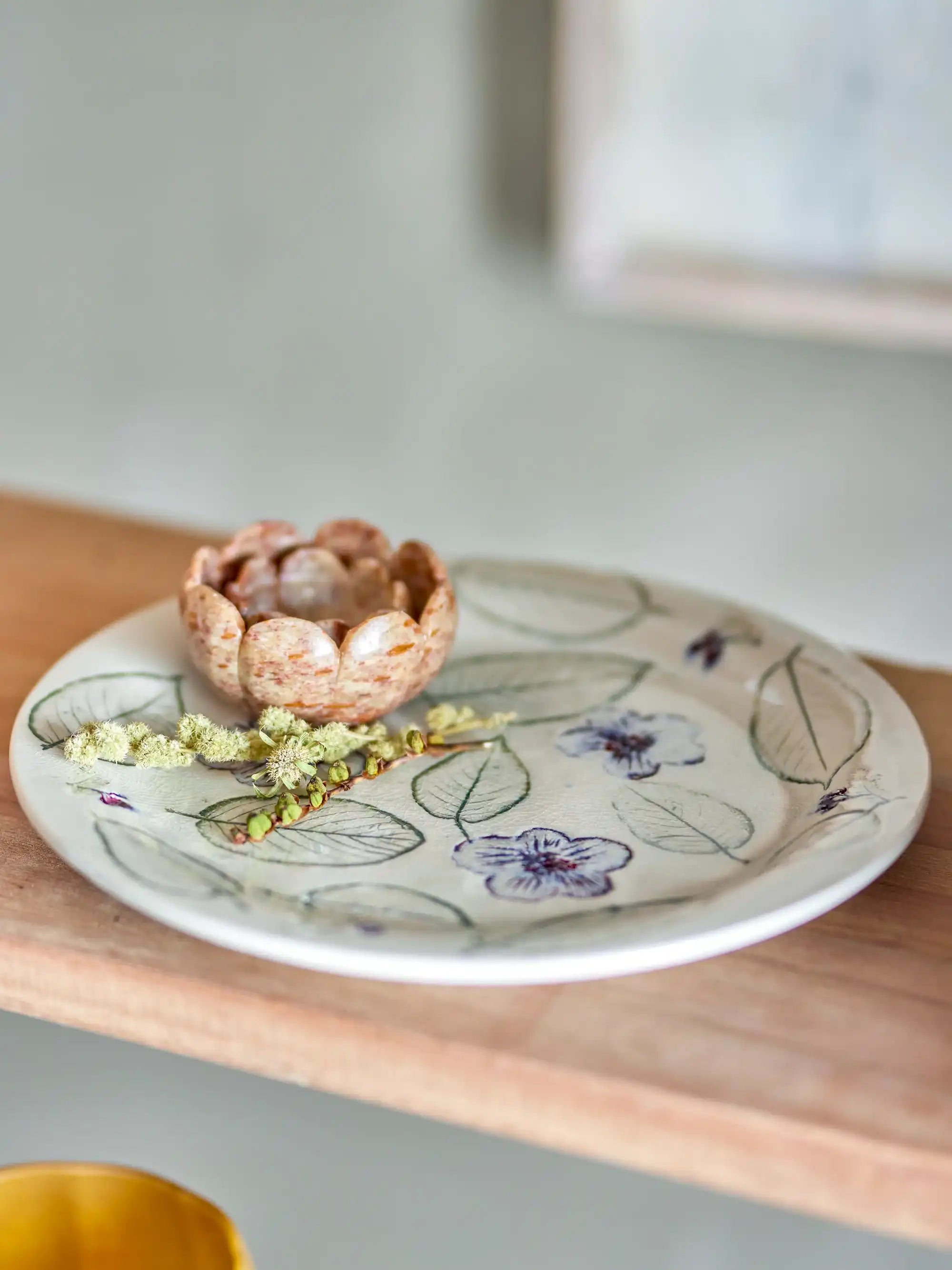 Warum du das Tablett von Bloomingville haben möchtest: Das Marlem Tablett von Bloomingville bringt eine raffinierte, botanische Note in dein Zuhause. Jedes Stück ist von Hand bemalt, wodurch die grünen Blätter und blauen Blumen lebendig und vielschichtig wirken. Der sanfte Glanz des Steinguts und das dezente Relief verleihen eine ruhige, skandinavische Ausstrahlung, die sich wunderbar mit Holz, Leinen und sanften Farbtönen kombinieren lässt. Nutze es als Serviertablett oder als dekorative Bühne – dieses Design vereint Stil und Funktionalität auf einen Schlag.