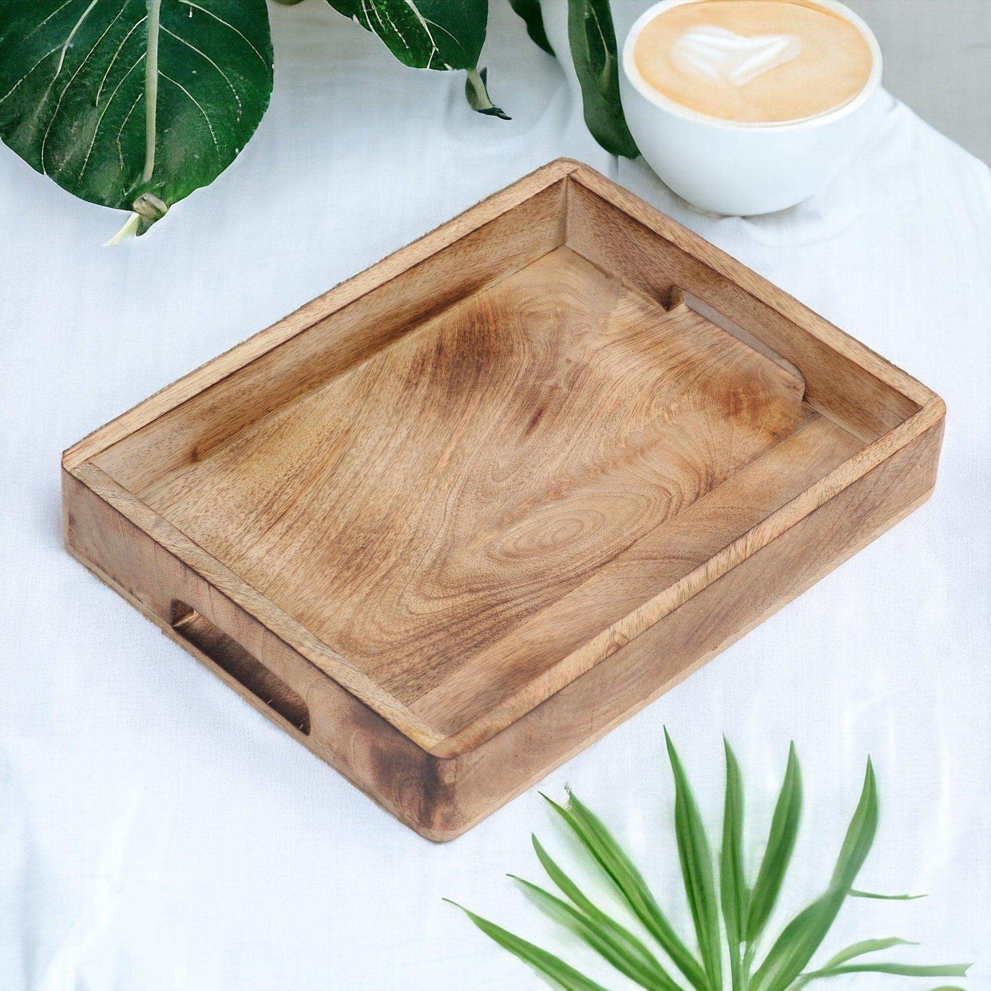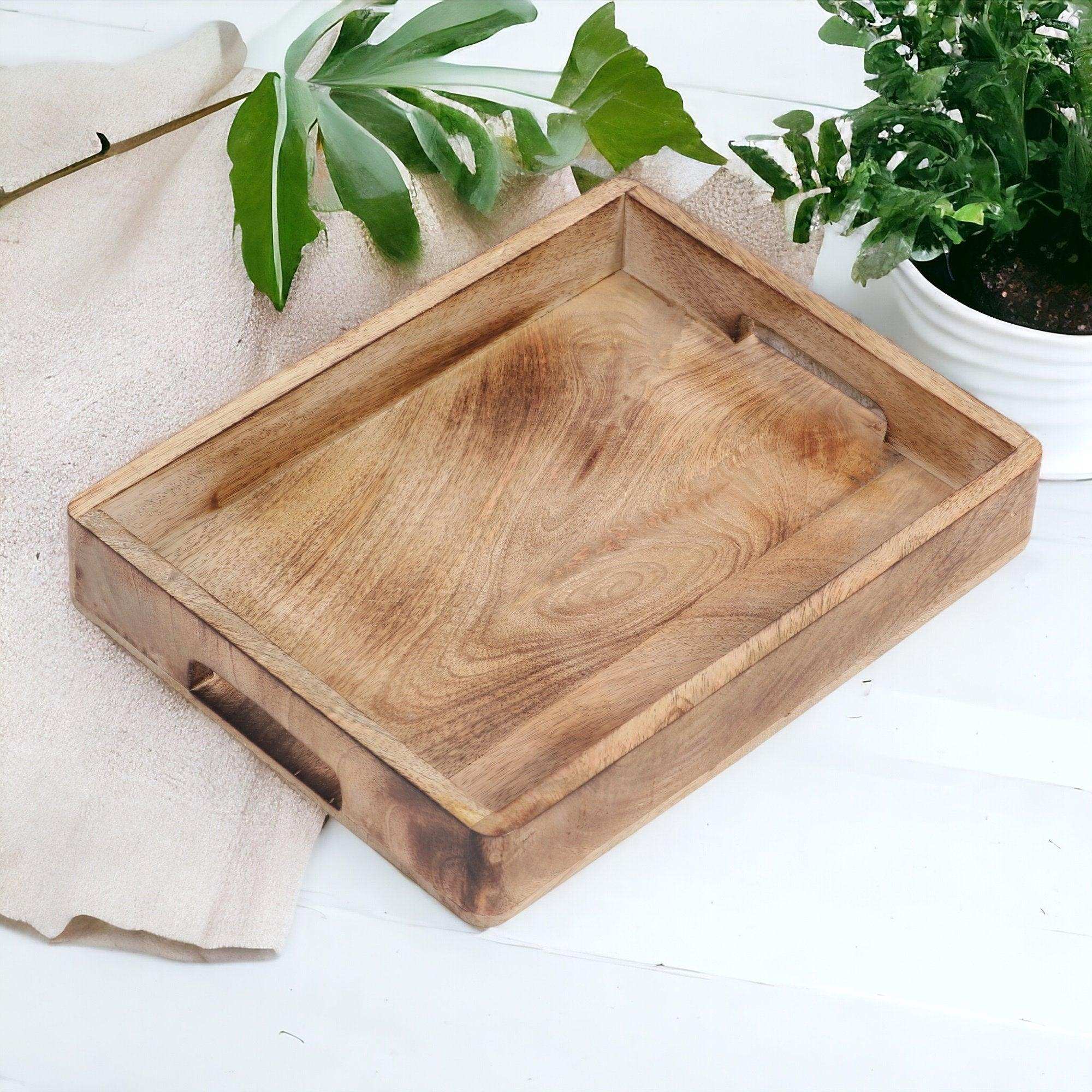 Entdecke die pure Einfachheit und Schönheit unseres Kentville Tabletts im Medium-Format, sorgfältig zusammengestellt von House of Nature. Dieses Tablett mit den Maßen 31x24x5cm ist perfekt, um Mahlzeiten elegant zu servieren oder dekorative Gegenstände stilvoll zu präsentieren. Gefertigt aus robustem Mangoholz in natürlicher Farbe, bringt es eine warme und organische Atmosphäre in jedes Interieur. Dank der zwei praktischen Griffe lässt es sich leicht tragen. Jedes Stück ist ein Unikat, handgefertigt, sodass kleine Unterschiede jedem Zuhause eine persönliche Note verleihen.