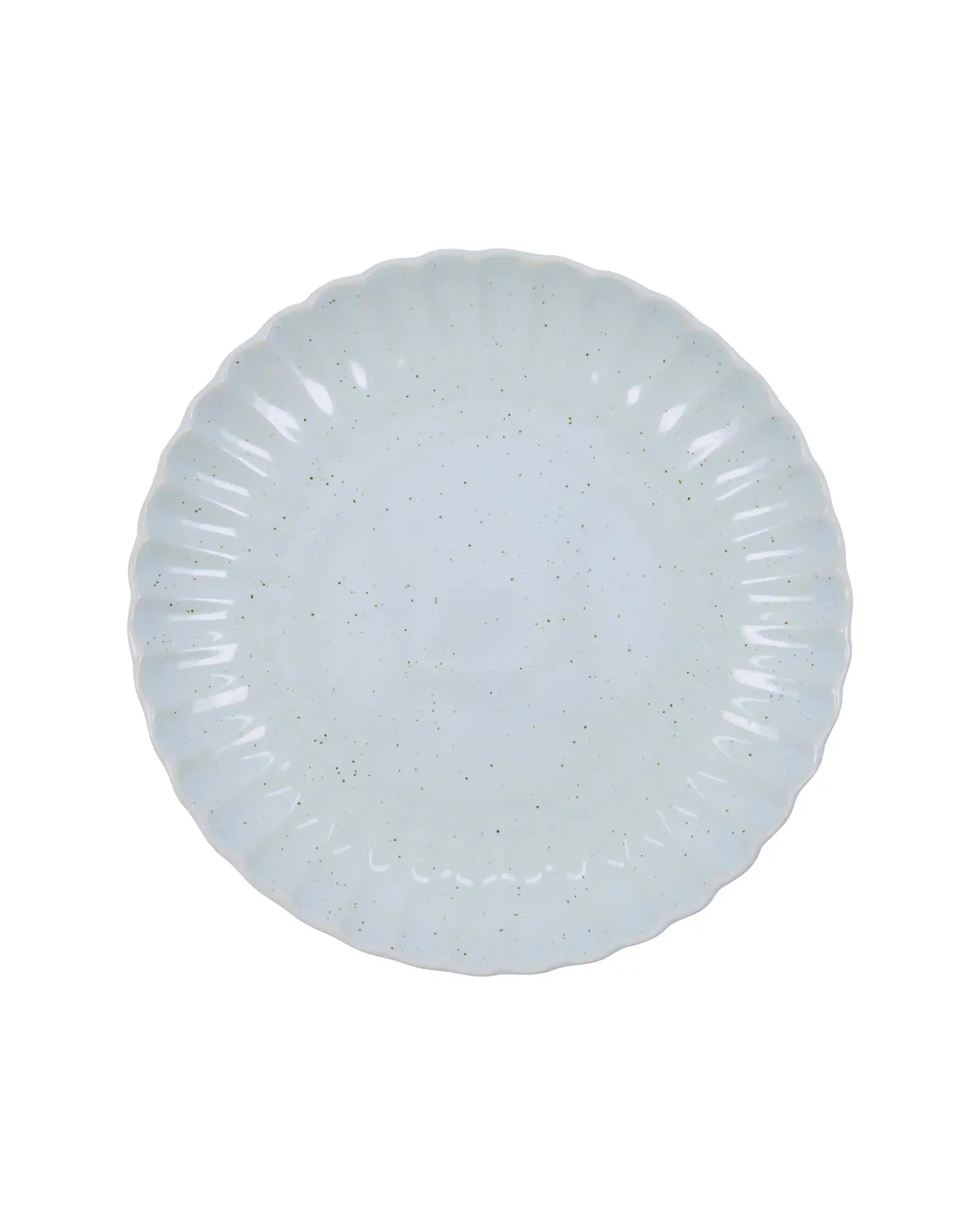 Verleihe deinem Esstisch einen frischen und stilvollen Look mit dem Speiseteller Scallop in Hellblau. Dieser handgefertigte Teller aus Steingut ist mit einer sanften, reaktiven Glasur und einem raffinierten, gewellten Design versehen, das jedes Gericht perfekt in Szene setzt. Das dezente Sprenkelmuster macht jeden Teller einzigartig und sorgt zusammen mit dem sanften Farbton für eine stimmungsvolle Tischdekoration.