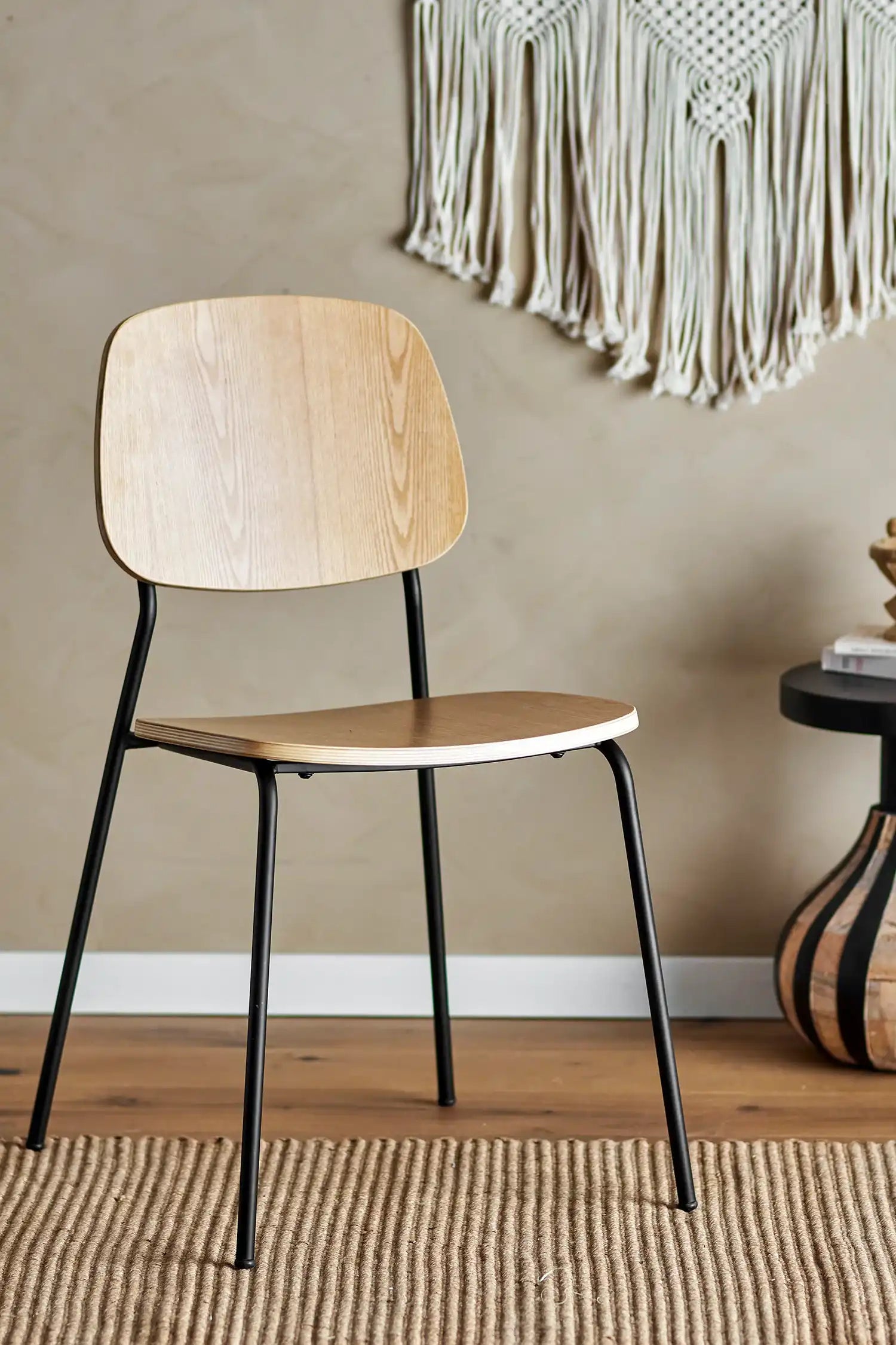 Details & Material: Der Monza ist aus robustem Schichtholz in natürlichen Farbtönen gefertigt und steht auf schlanken, schwarzen Metallbeinen. Dank des leichten Materials wirkt der Stuhl luftig, bleibt aber dennoch stabil. Die Maße (52 x 83 x 45 cm) machen ihn bequem und passend für verschiedene Tischhöhen, während das Design mühelos zu modernen wie klassischen Interieurs passt.