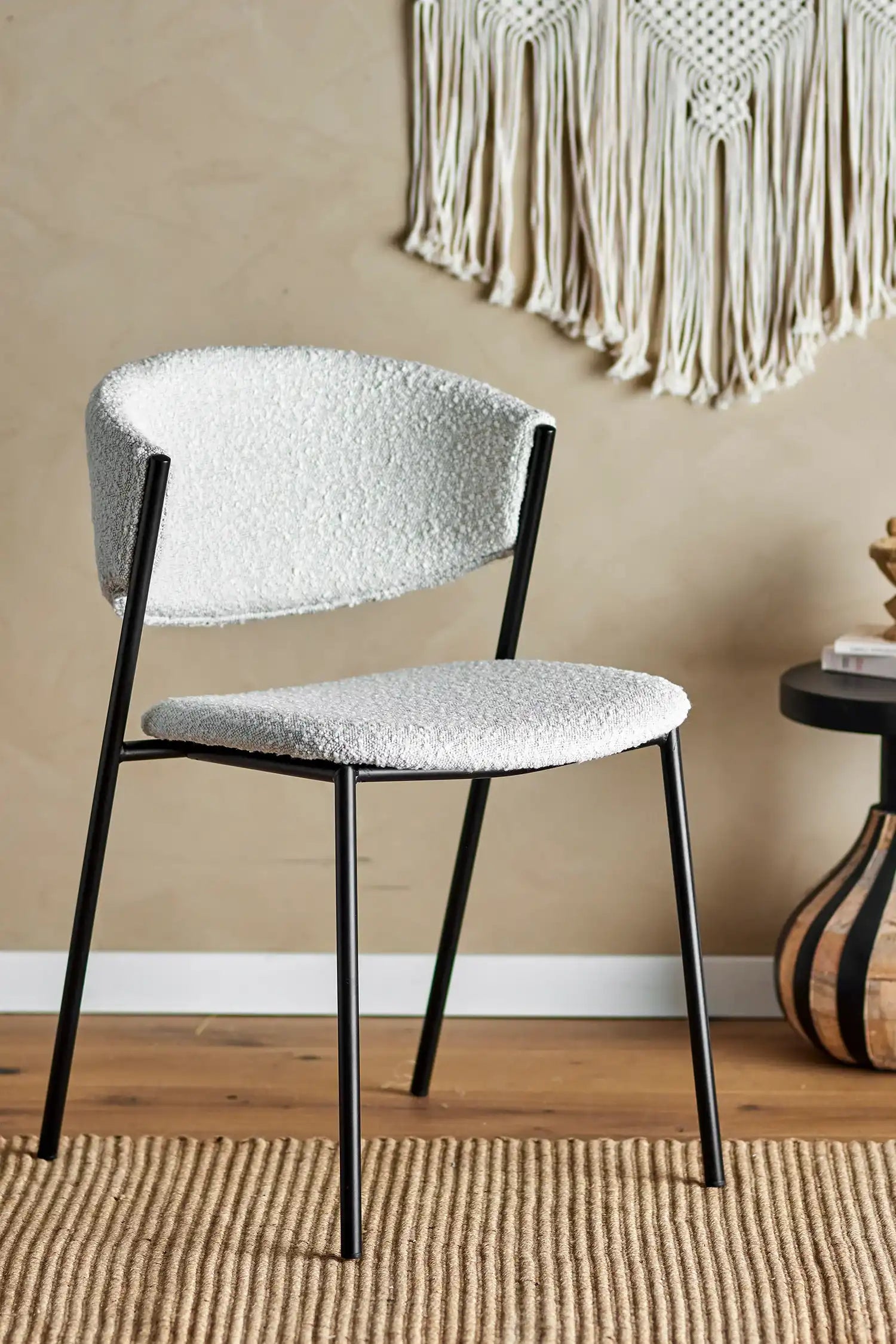 Hochwertige Verarbeitung & skandinavisches Material: Der Marlo Esszimmerstuhl von Bloomingville ist mit luxuriösem, weißem Bouclé aus Polyester bezogen. Dank des cleveren, stapelbaren Designs und der Maße von 54 x 79 x 49 cm passt er mühelos in kleine wie große Räume. Die weiche, dennoch feste Sitzfläche sorgt dafür, dass du immer wieder Platz nehmen möchtest.