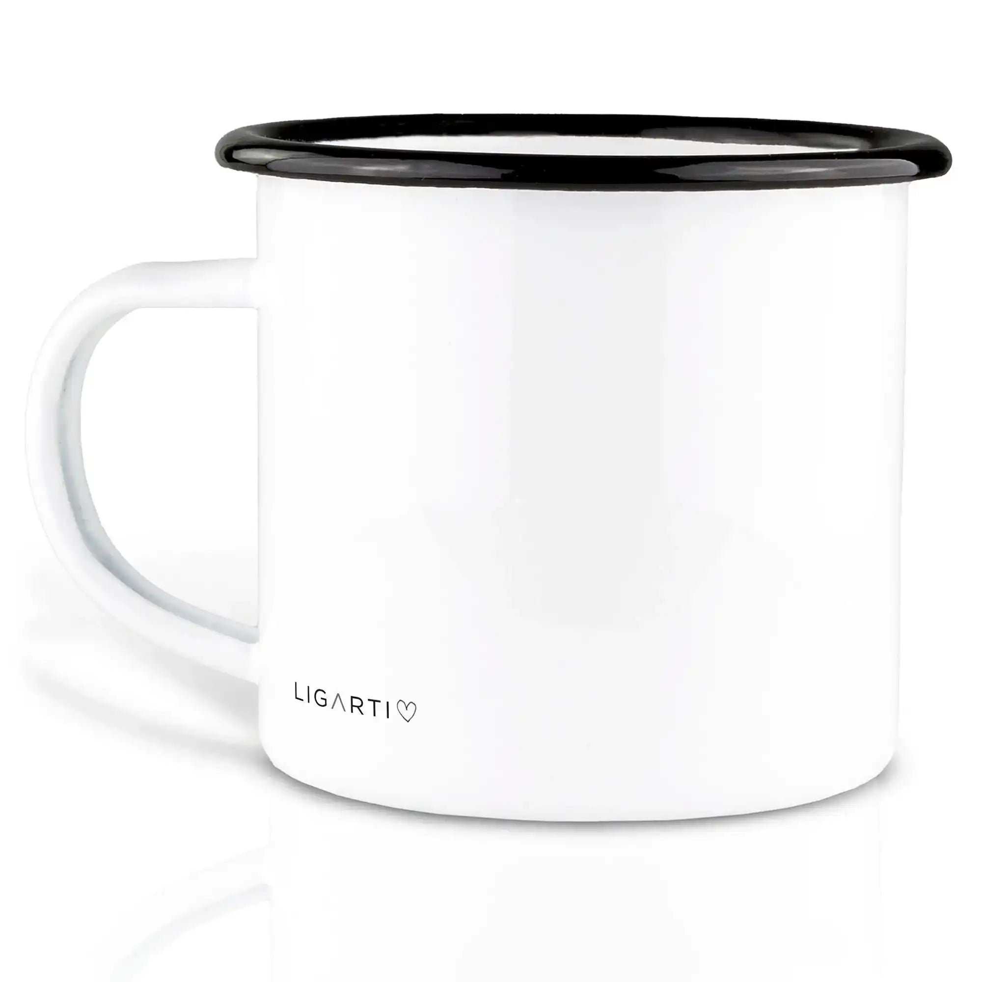 Die Tasse besteht aus hochwertigem emailliertem Metall und wird von Hand in Deutschland bedruckt. Sie ist leicht, robust im Gebrauch und ideal sowohl für zu Hause als auch unterwegs. Jede Tasse wird sorgfältig und umweltbewusst verpackt.