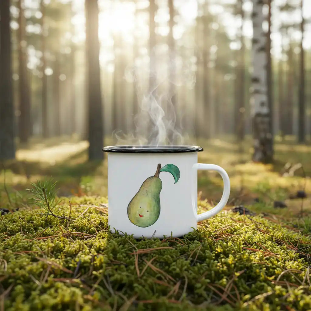 Eine Tasse, die deinen Tag erhellt – im wahrsten Sinne des Wortes. Diese Emaille-Tasse mit fröhlicher Birnenzeichnung zaubert dir bei jedem Schluck ein Lächeln ins Gesicht. Das frische Design und die charmante Illustration machen sie ideal für zu Hause, im Büro oder beim Zelten. Leicht, robust und langlebig: ein echter Alleskönner.
