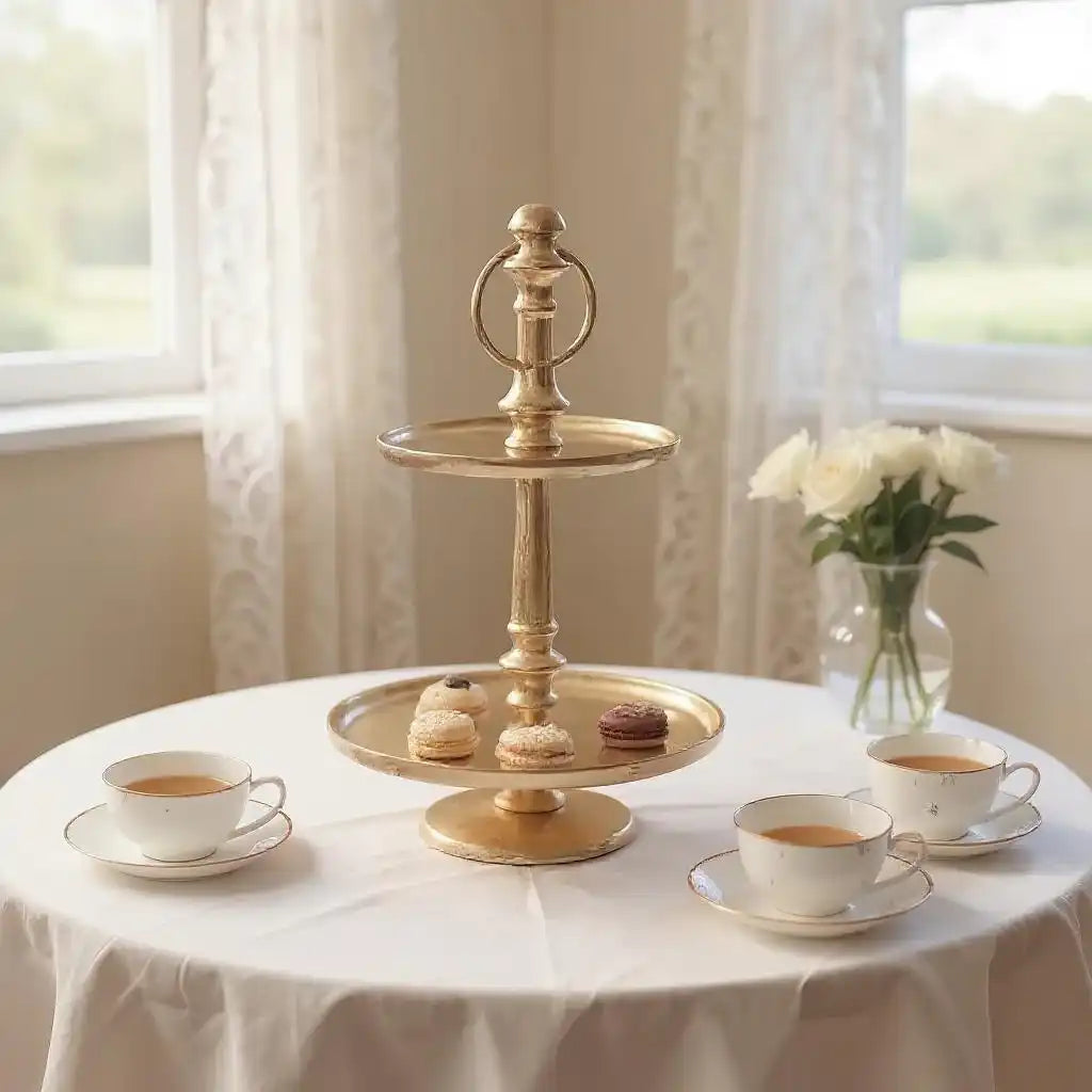 Vereine Luxus und Funktionalität mit der Etagère Prestige Gold – 2 Laags – 32 cm Hoog.