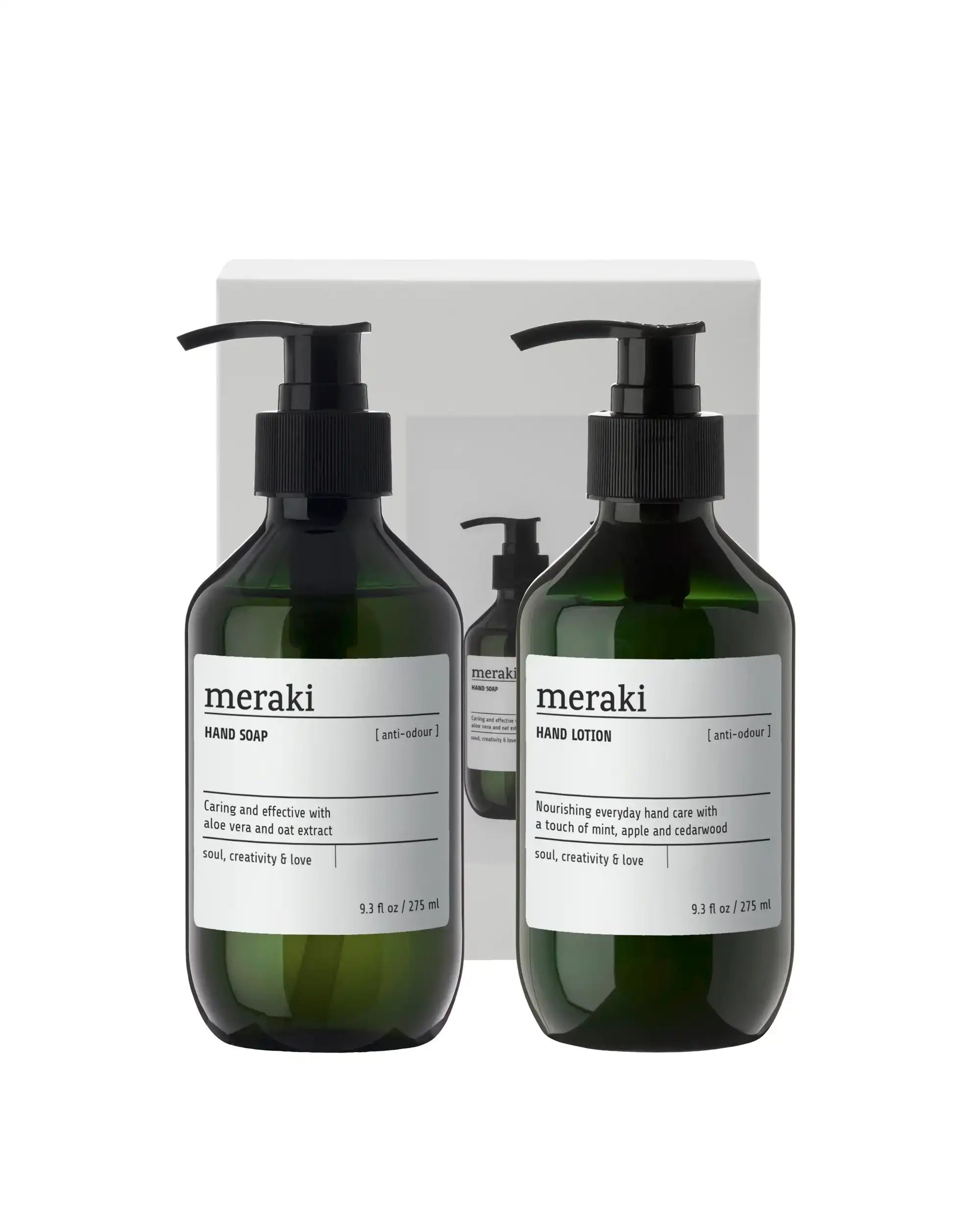 Ein Geschenk, das sowohl gepflegt als auch durchdacht wirkt: Die Simple hand care Anti-odour Geschenkbox von Meraki vereint Form und Funktion mühelos. In der Box findest du zwei stilvolle Flakons à 275 ml – eine sanfte Handseife und eine feuchtigkeitsspendende Lotion – speziell entwickelt, um unerwünschte Gerüche zu neutralisieren und deine Haut mit milden Inhaltsstoffen zu pflegen.