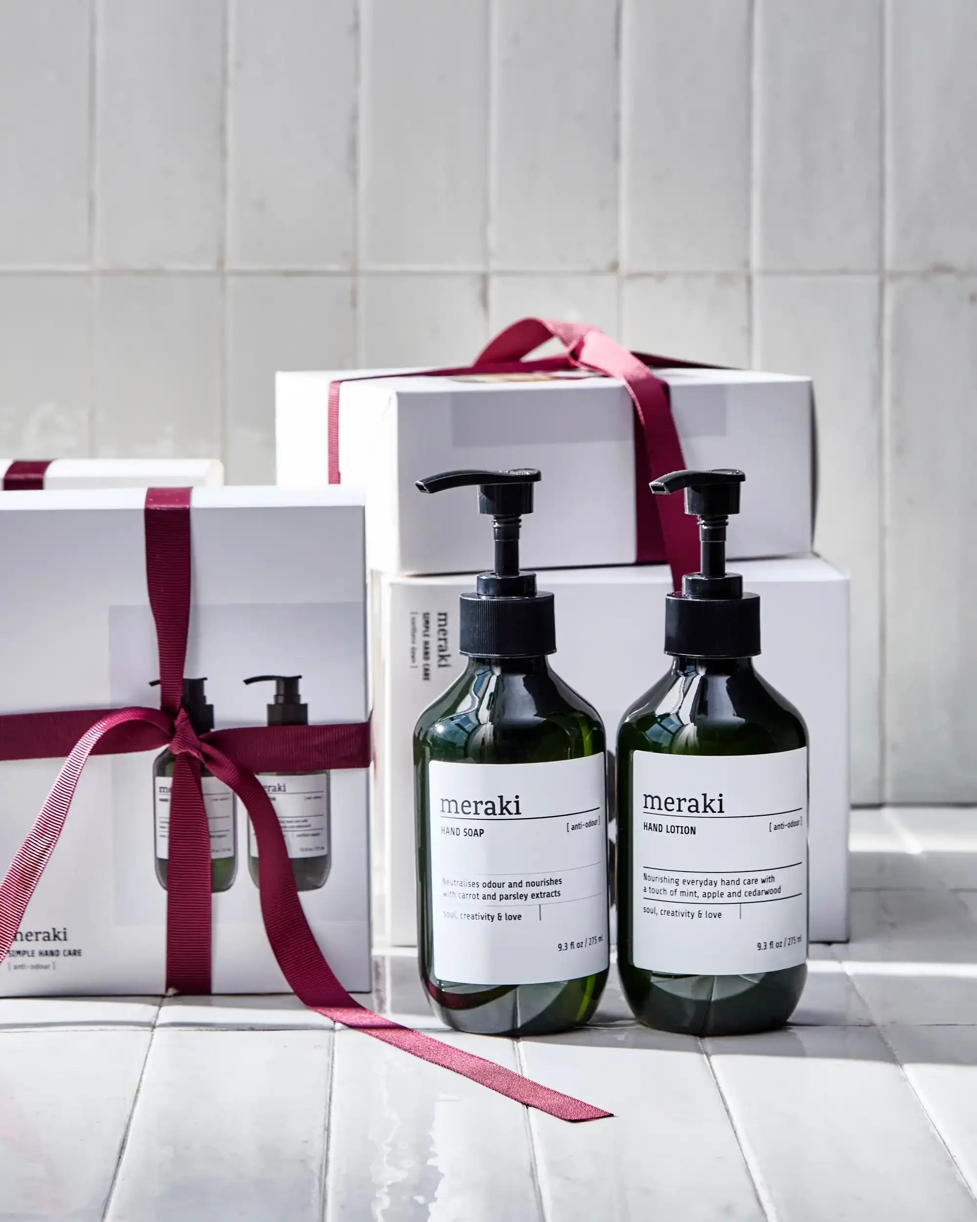 Meraki bietet eine einzigartige Kollektion an Lifestyle- und Hautpflegeprodukten, entworfen in Dänemark mit skandinavischer Ästhetik und Liebe zur Natur. Das Sortiment umfasst unter anderem Seifen, Duftkerzen und stilvolle Wohnaccessoires wie Duftstäbchen und Wandhaken. Die Produkte werden aus natürlichen Inhaltsstoffen hergestellt und sind frei von Parabenen und Farbstoffen.
