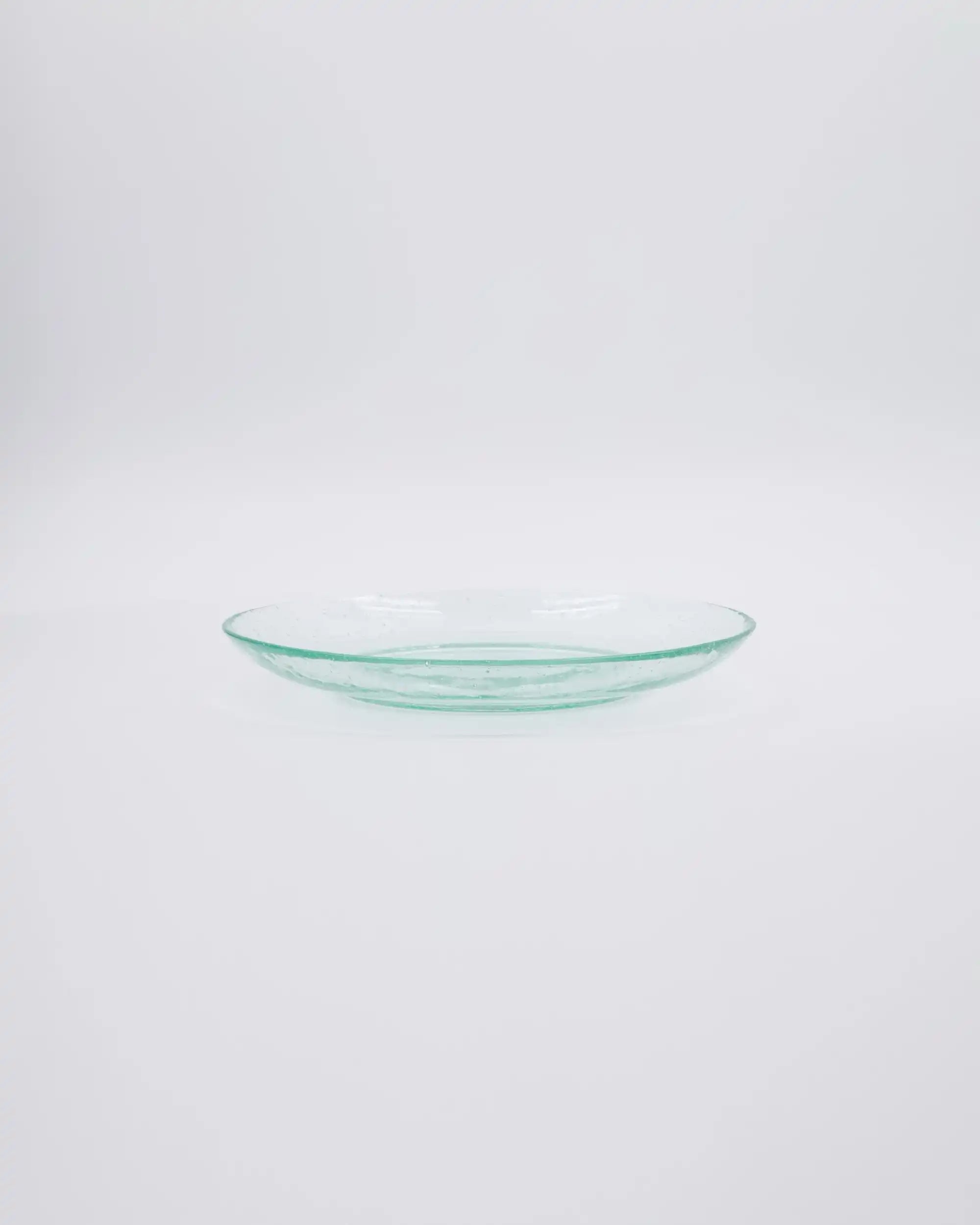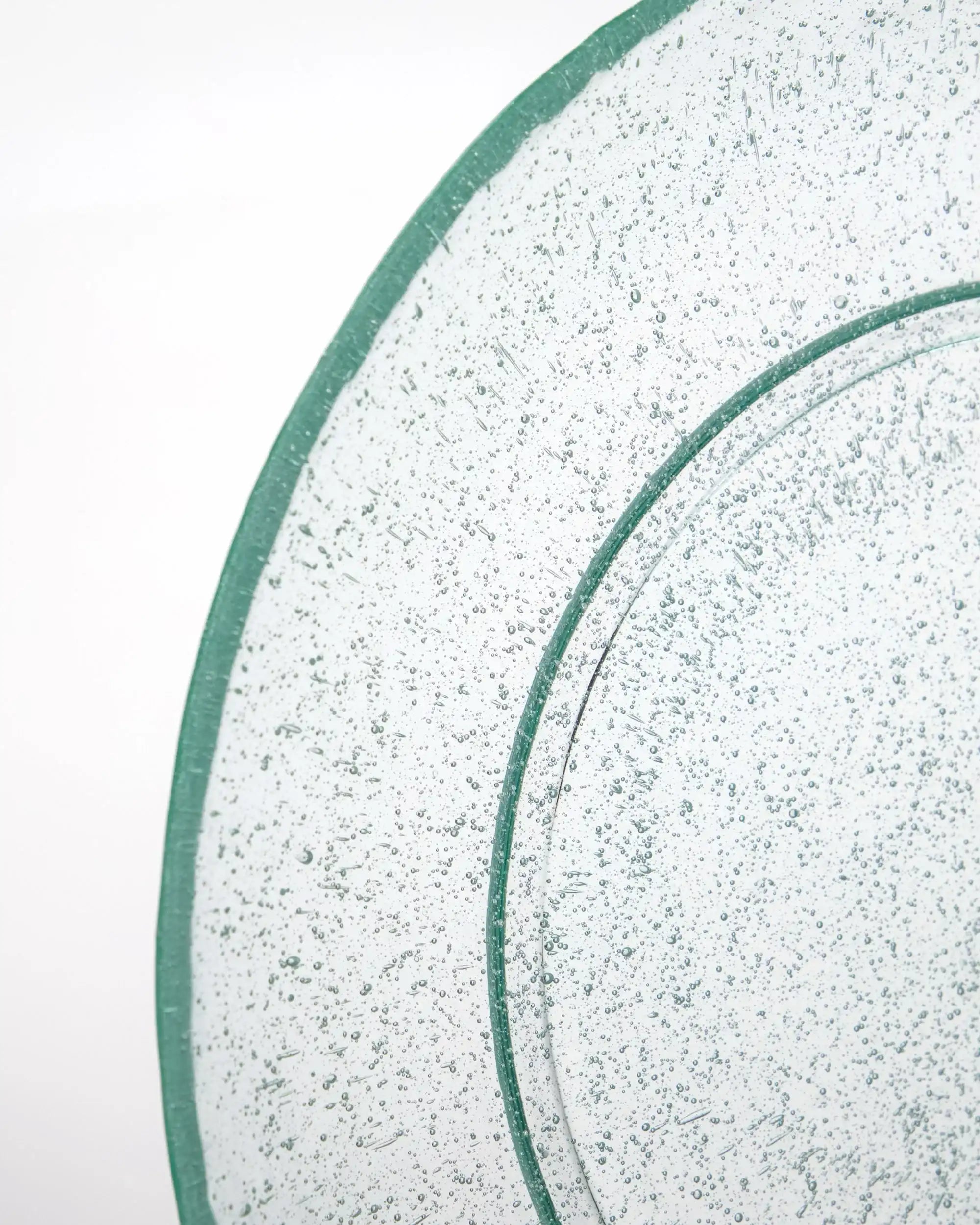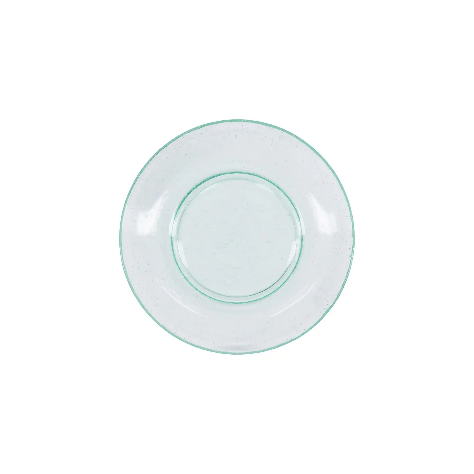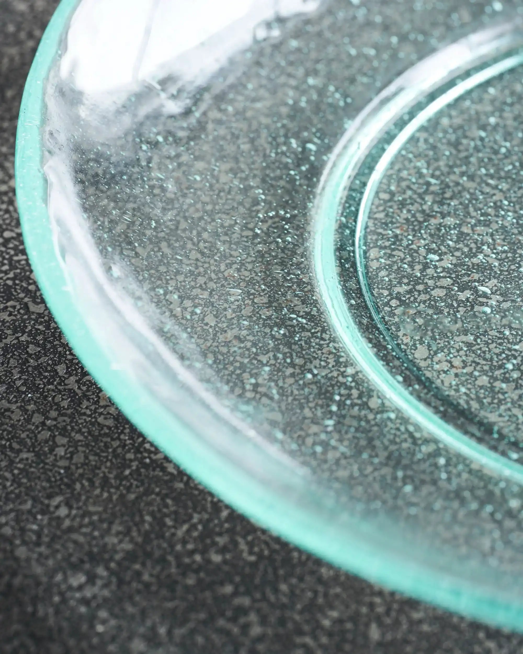 Bringe Farbe und Charakter auf den Tisch mit diesem Glasteller in frischem Aqua-Ton. Das subtile Spiel der Luftbläschen in der Oberfläche fängt das Licht auf eine besondere Weise ein und macht jedes Exemplar zu einem Unikat. Perfekt für einen sommerlichen Frühstückstisch oder ein entspanntes Mittagessen mit Freunden.