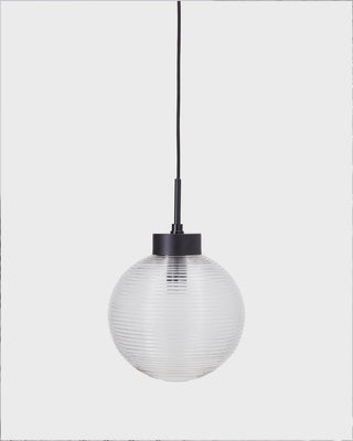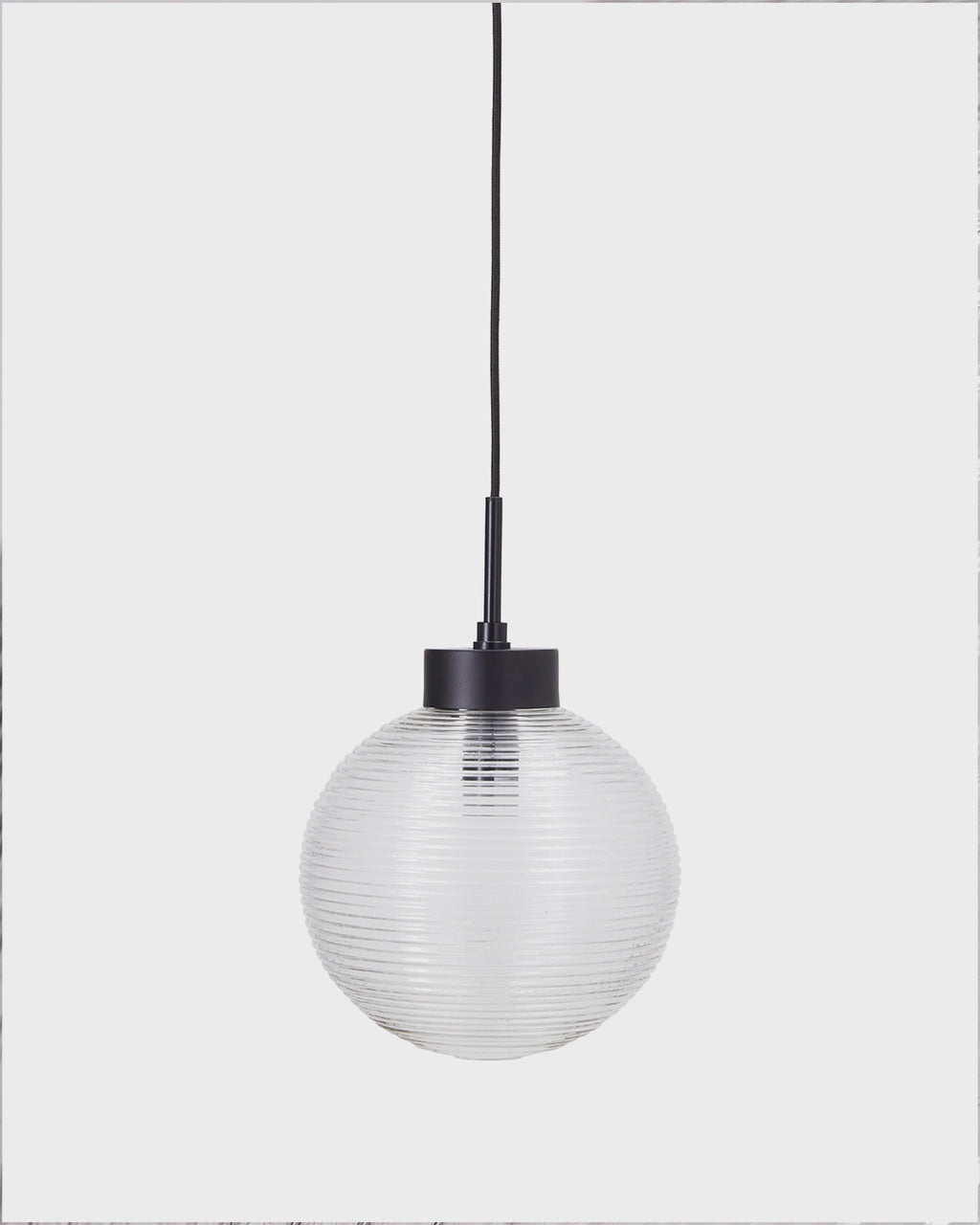 Der handgefertigte, geriffelte Glasschirm verleiht der runden Hängeleuchte nicht nur eine taktile Struktur, sondern sorgt auch für ein verspieltes Spiel aus Licht und Schatten. Die Eisenoberseite setzt einen dezenten industriellen Akzent im Design, wodurch die Gaia Lampe einen einzigartigen und vielseitigen Look erhält.