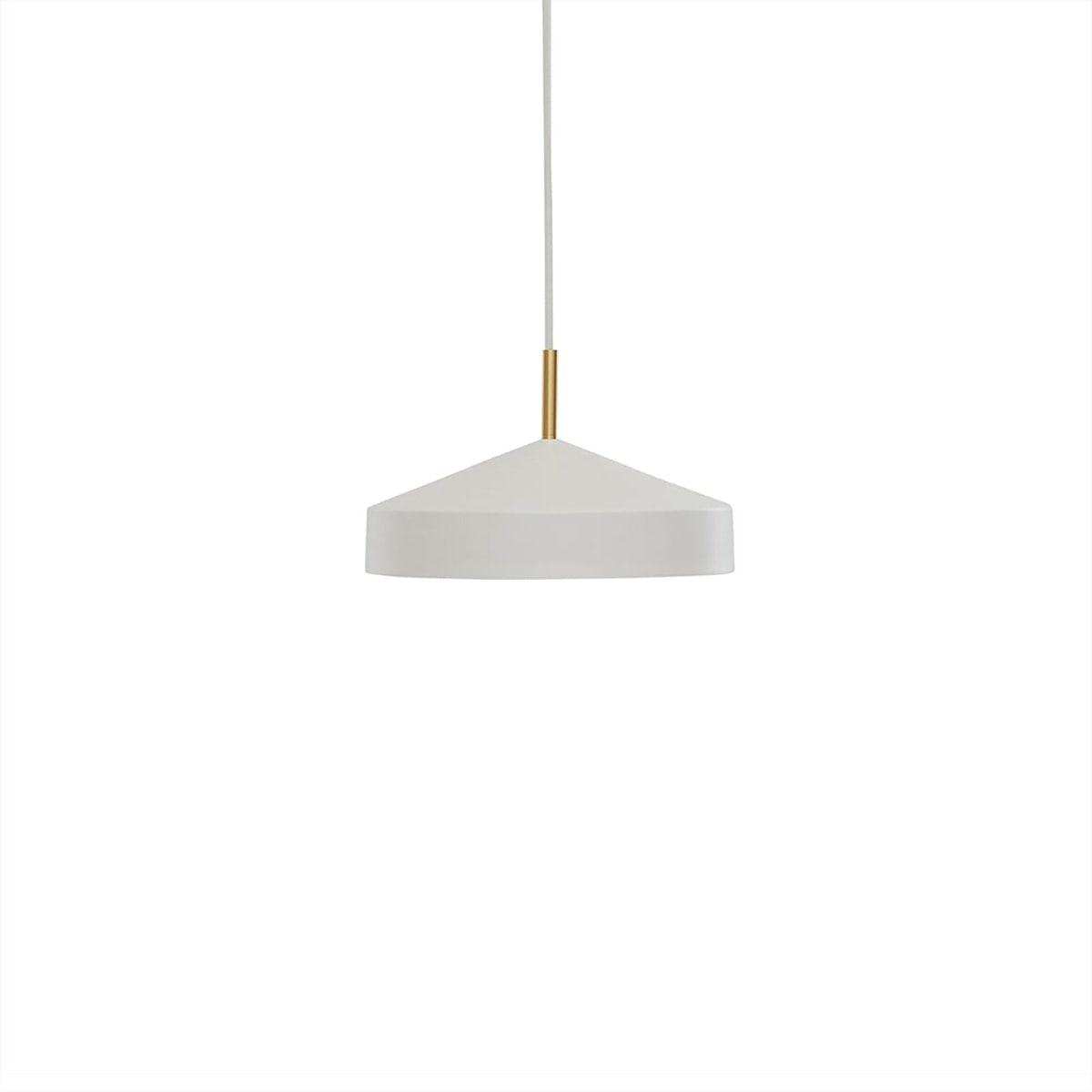 Die kleinste Variante der Oyoy Hatto Pendelleuchte ist eine wunderschöne Ergänzung für jedes Interieur. Mit ihrem japanischen Namen, der "Hut" bedeutet und auf ihre besondere Form anspielt, ist diese weiße Pendelleuchte perfekt für alle, die einen schlichten und eleganten Look suchen. Das weiß pulverbeschichtete Metall sorgt für einen Hauch von Luxus im Zuhause, während das Messingdetail an der Oberseite der Lampe und das Stoffkabel für ein edles Finish sorgen.