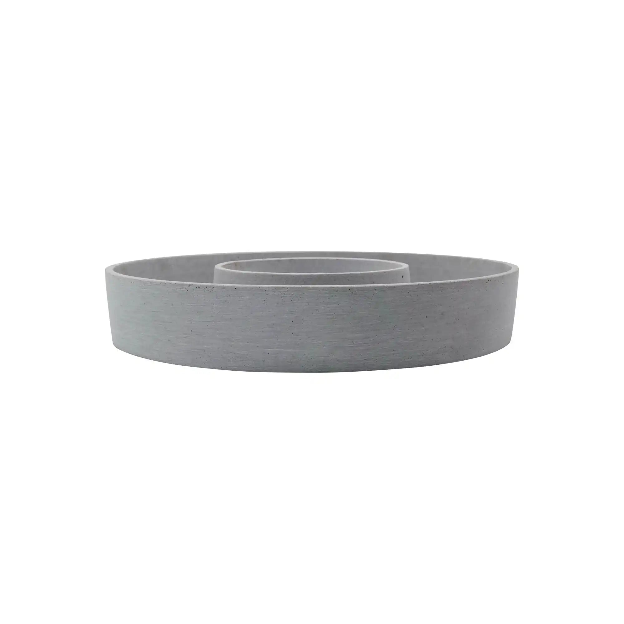 Gefertigt aus robustem Steinmaterial (Polystone) mit einer grauen, zementähnlichen Optik. The Ring ist 6 cm hoch und hat einen Durchmesser von 35 cm – ideal, um vier Stumpenkerzen oder eine natürliche Tischdekoration zu präsentieren. Das matte Finish verleiht ihm eine ruhige Ausstrahlung, die wunderbar mit anderen Texturen und Farben harmoniert.