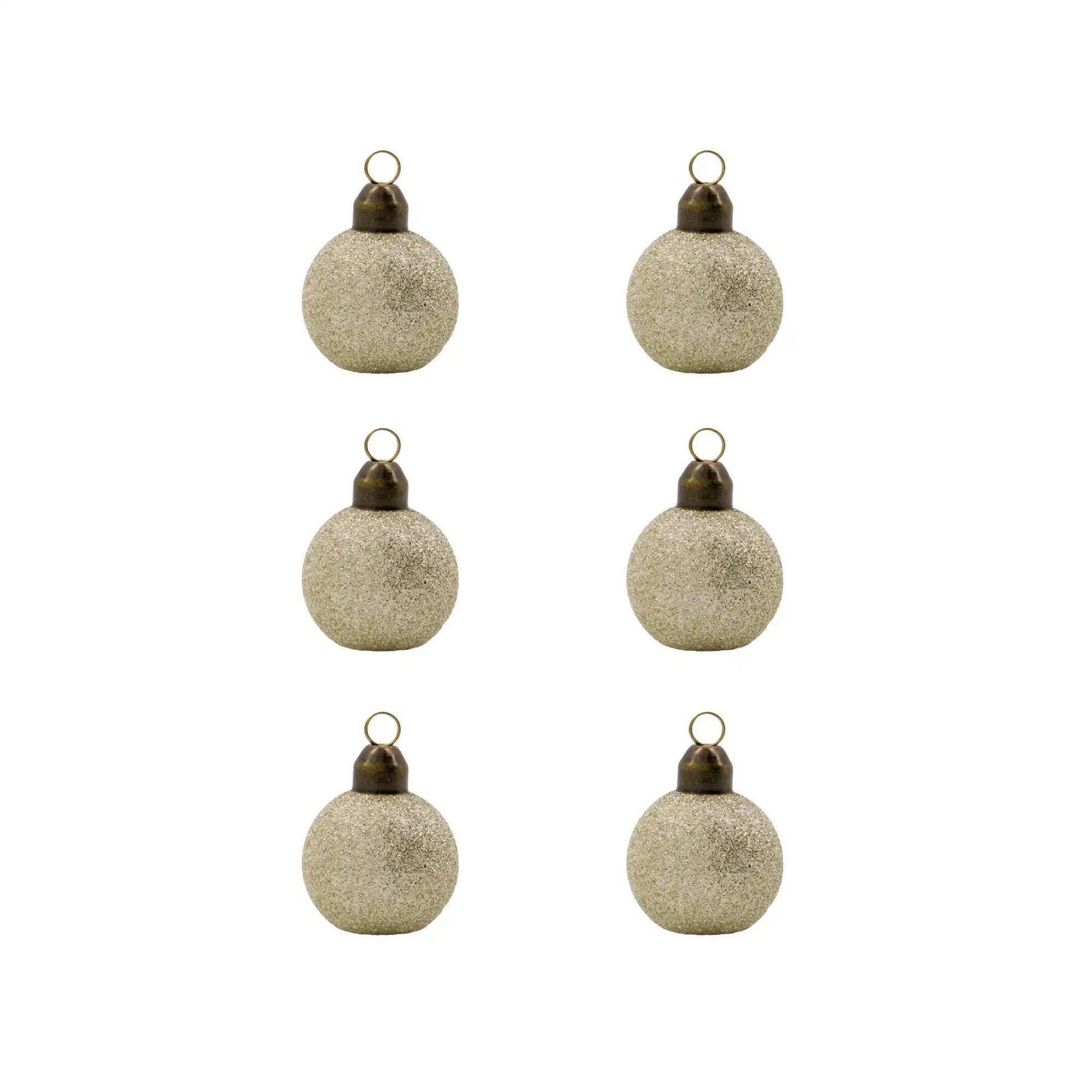 Das Set besteht aus sechs runden Haltern aus Glas, veredelt mit einer funkelnden Schicht champagnerfarbener Glitzer. Oben befindet sich ein Metallring, in den du ganz einfach eine Namenskarte, Menükarte oder Botschaft stecken kannst. Jeder Halter ist 5,5 cm hoch und hat einen Durchmesser von 3,8 cm – kompakt, aber auffällig genug, um gesehen zu werden.