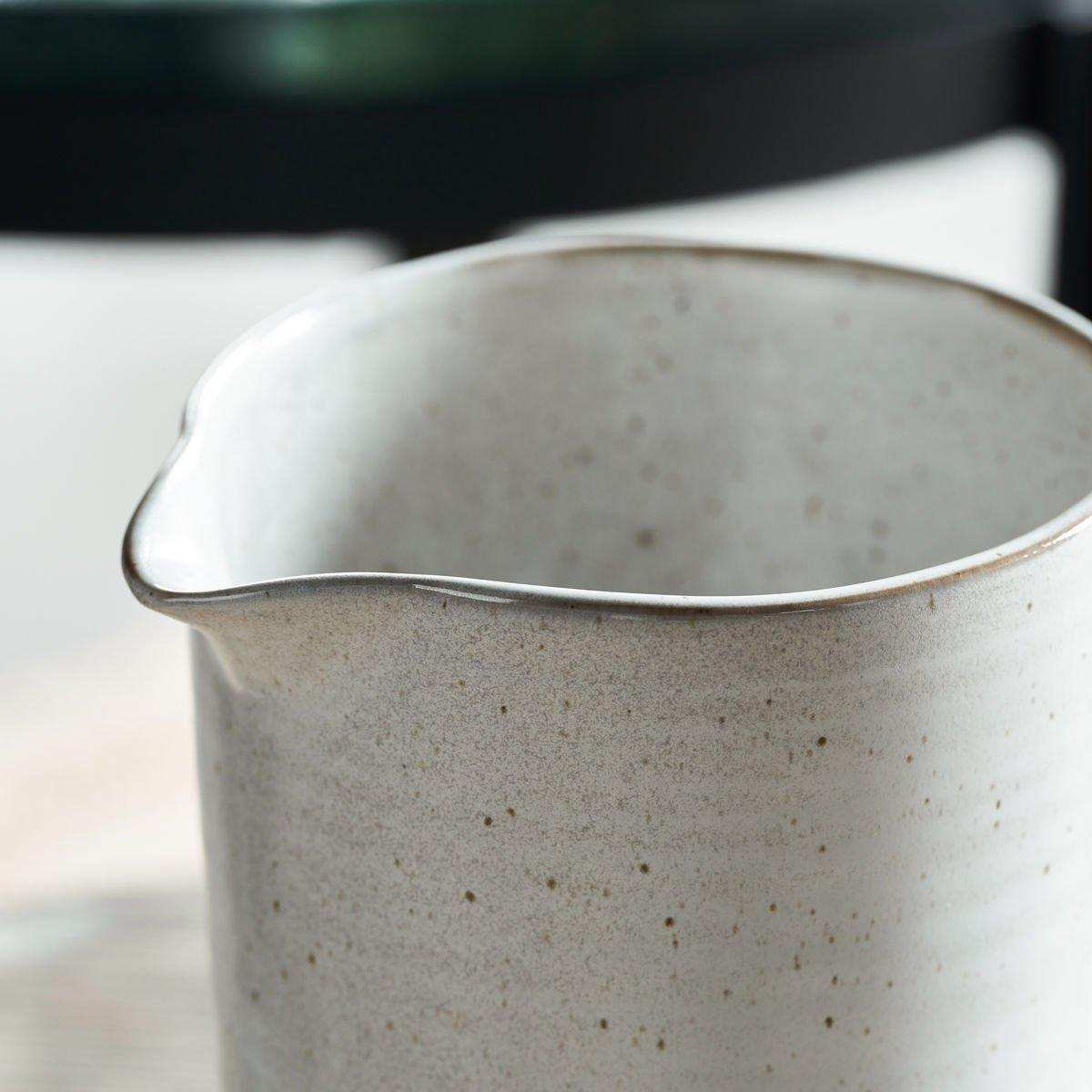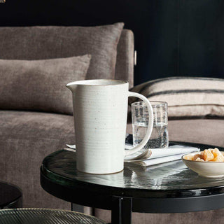 Die Pion Kanne mit einem Fassungsvermögen von 1,5 Litern ist die perfekte Balance zwischen Eleganz und Robustheit. Die dezente weiße Farbe sorgt für einen sanften Look, während das rustikale Design und die matte Textur der Glasur eine robuste Note verleihen. Die Kanne ist mit einer reaktiven Glasur veredelt, wodurch jedes Stück einzigartig ist und eine besondere Ausstrahlung hat.