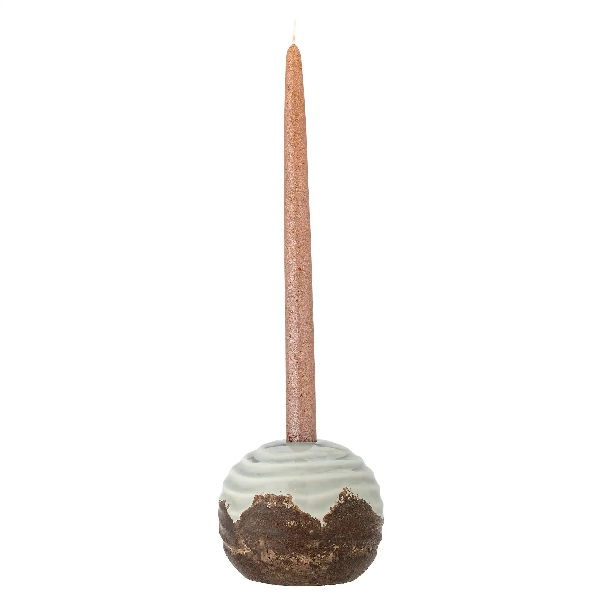 Details & Material: Dieser Kerzenhalter von Bloomingville ist aus robustem Steingut gefertigt und mit einer braun-grünen Glasur versehen. Durch die besondere Glasur ist jeder Paula Kerzenhalter ein Unikat mit feinen Farbnuancen. Mit einer Höhe von 10 cm und einem Durchmesser von 12 cm passt er perfekt auf den Esstisch oder ein Sideboard.