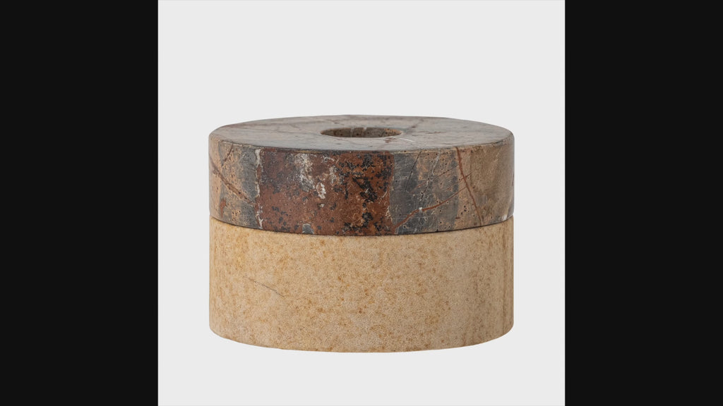 Besonderes Material & natürliches Design: Dieser stilvolle Kerzenhalter ist aus Sandstein gefertigt, wodurch jedes Stück subtile Unterschiede in Farbe und Maserung aufweist. Dank des natürlichen Gesteins wirkt der Halter stilvoll und organisch, und kein Kerzenhalter gleicht dem anderen – dein Exemplar ist also wirklich einzigartig! Mit einem Durchmesser von 9 cm und einer Höhe von 5,5 cm ist er kompakt und vielseitig einsetzbar, sowohl als Teelichthalter als auch für eine Kerze.