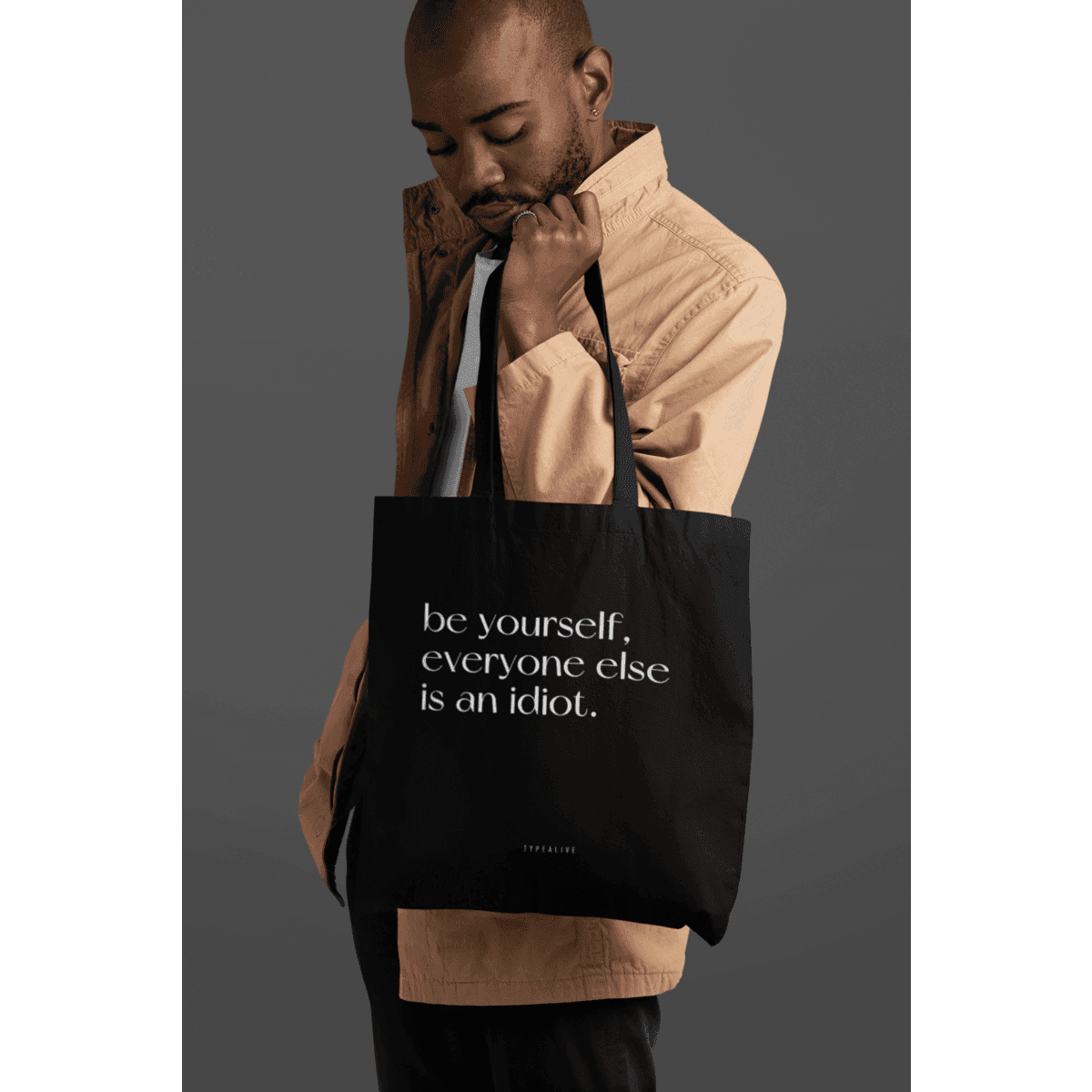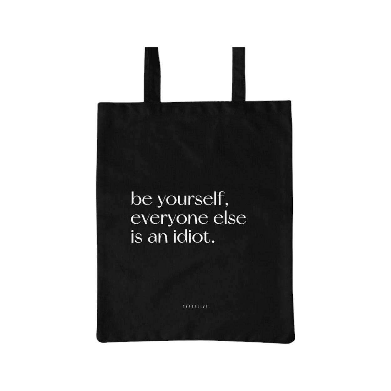 Die Typealive Katoenen tas Be yourself zwart ist eine stilvolle und nachhaltige Tasche, die perfekt für jeden Anlass ist. Mit dem Spruch "Be Yourself, Everyone else is an idiot" auf schwarzem Hintergrund verleiht diese Tasche deinem Alltagsoutfit eine Prise Humor und Selbstbewusstsein. Hergestellt aus 100% oeko-tex zertifizierter Baumwolle, bietet dieser Baumwoll-Shopper sowohl Umweltfreundlichkeit als auch Stil.