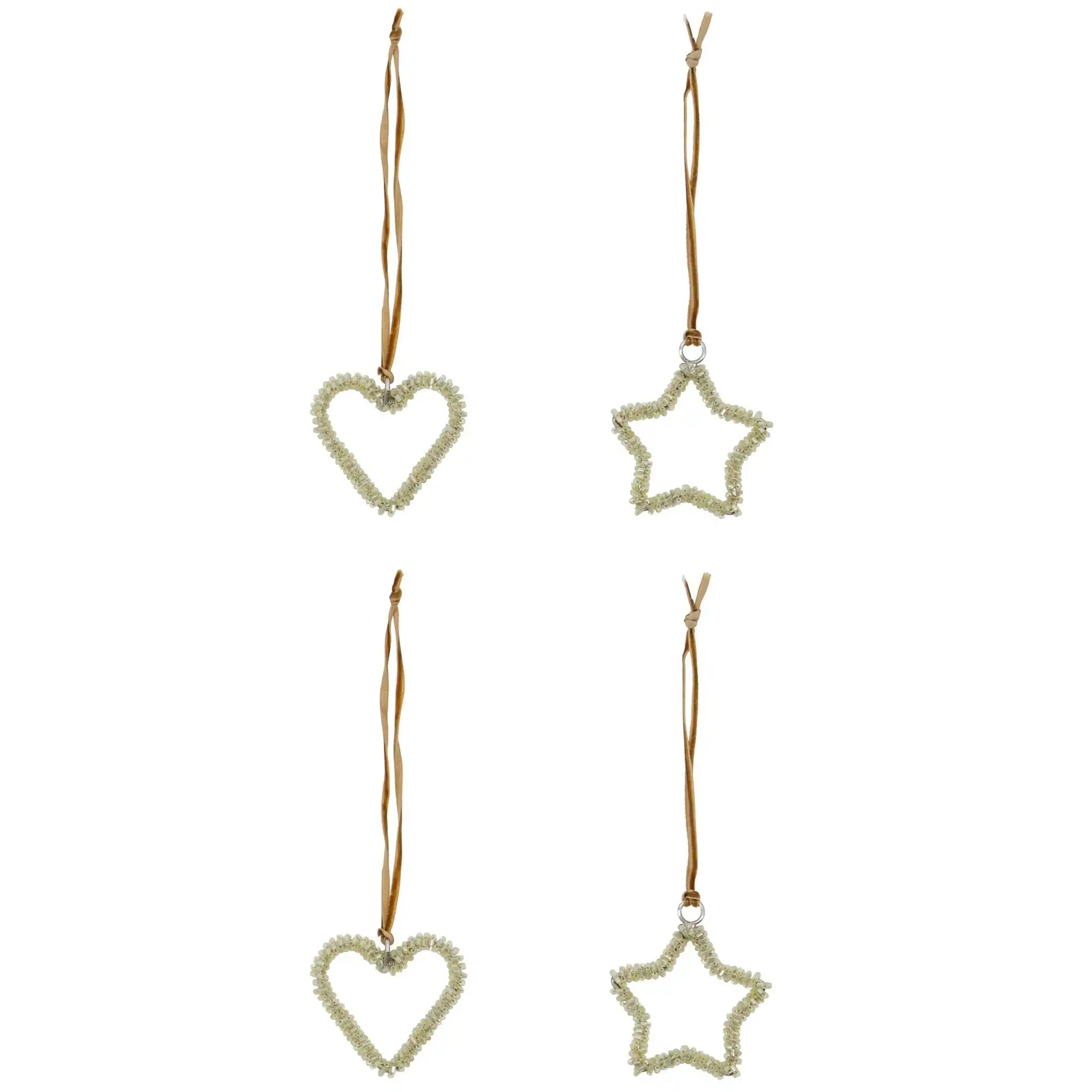 Ein subtiler Schimmer macht den Unterschied in deiner Weihnachtsdekoration. Diese festlichen Ornamente, entworfen in Stern- und Herzform, ziehen mühelos die Aufmerksamkeit auf sich, ohne zu übertreiben. Sie verleihen jedem Zweig oder jeder Festtafel Charakter und geben deinem Interieur eine raffinierte, festliche Note.