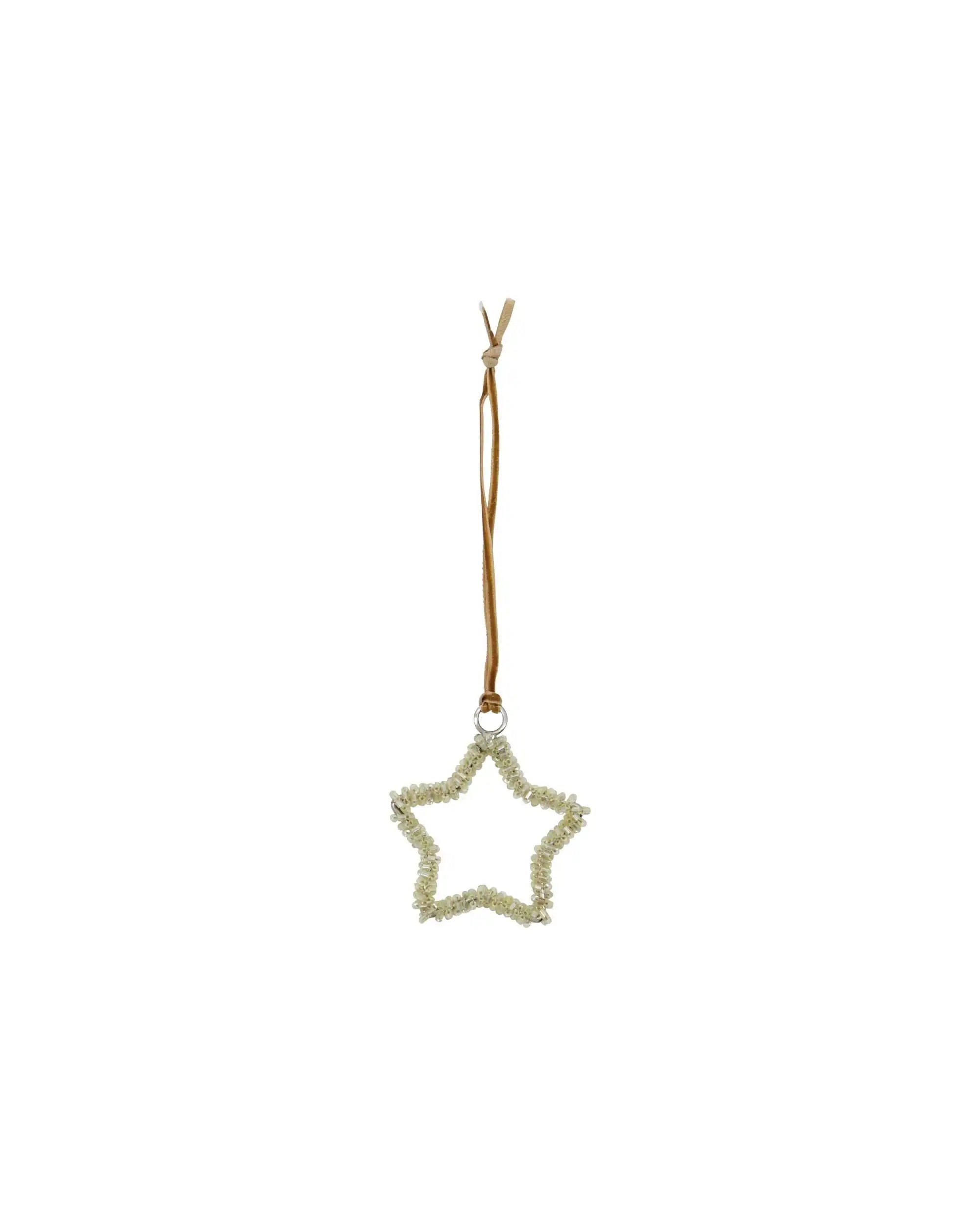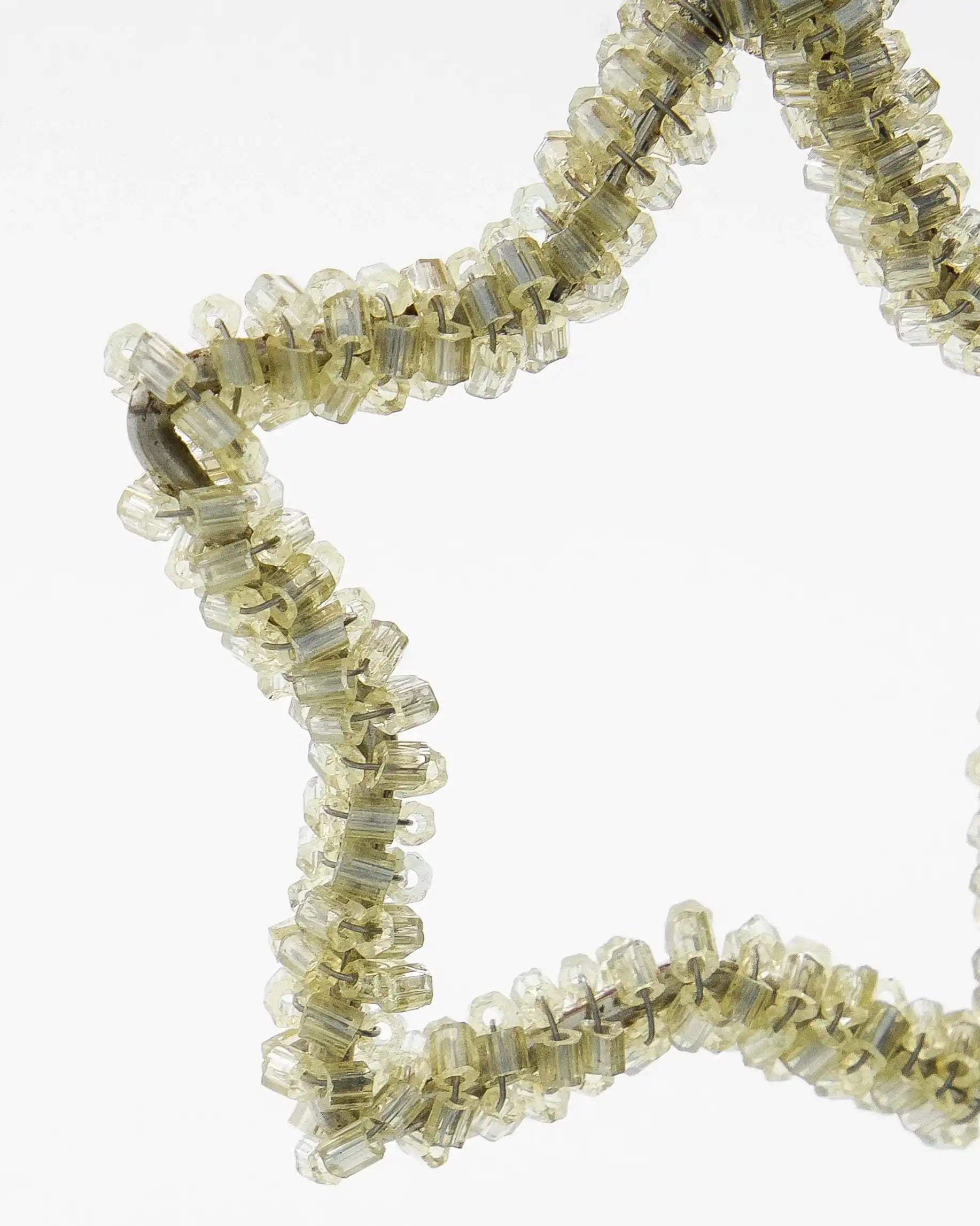 Gefertigt aus robustem Metall und sorgfältig veredelt mit funkelnden Glasperlen in champagnerfarbenem Glanz. Die Ornamente haben eine kompakte Größe von 5,5 x 5,5 cm, sodass du sie einfach mit anderer Dekoration kombinieren kannst. Jedes Stück hängt an einer weichen Baumwoll-Samtkordel, was für einen luxuriösen Look sorgt.