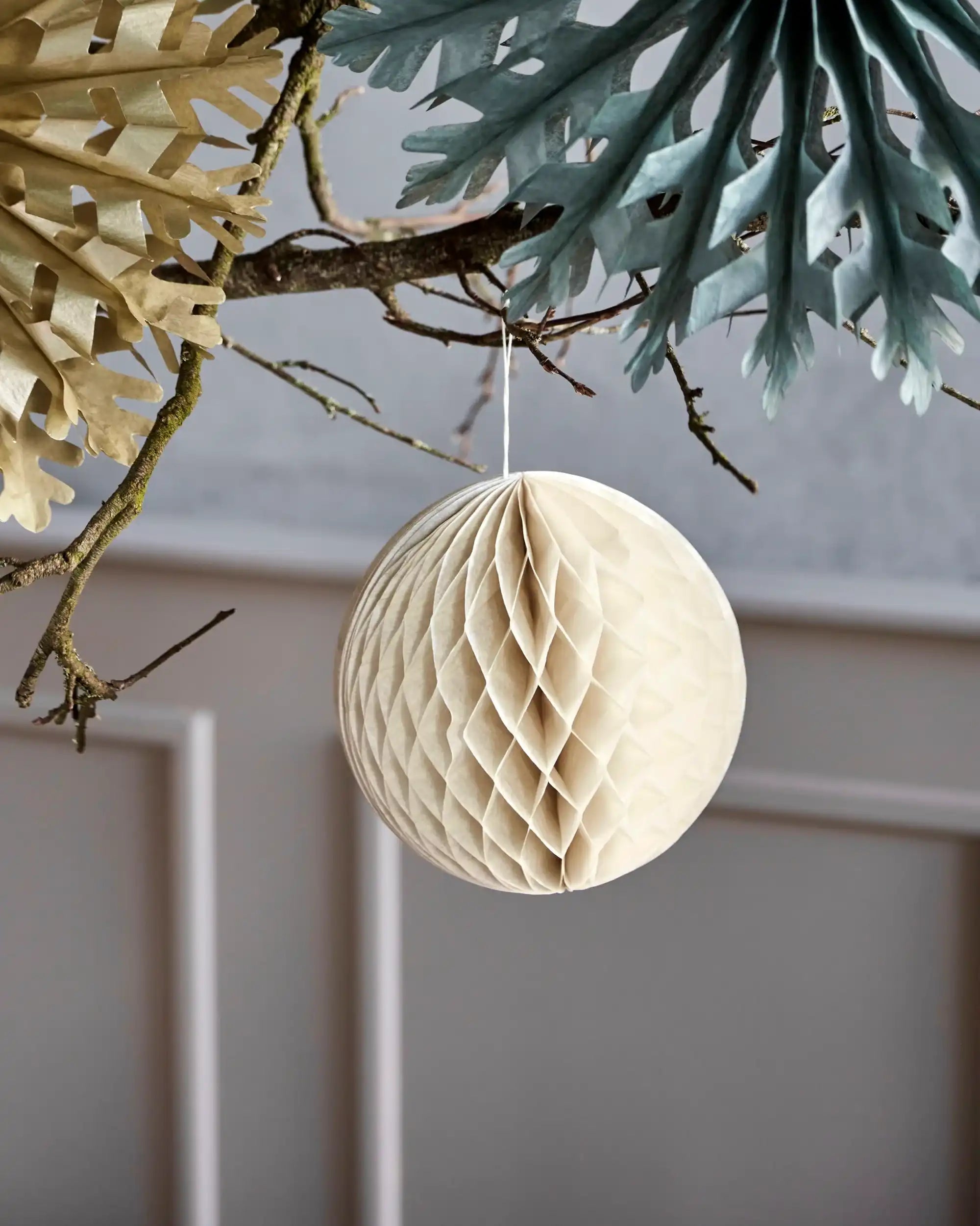 Eine festliche Atmosphäre beginnt mit den richtigen Details. Diese Papier-Orb-Ornamente in dezentem Elfenbein bringen sofort Wärme und Raffinesse in dein Zuhause. Ob du das Fenster dekorierst, einen festlichen Zweig schmückst oder dem Tisch einen besonderen Akzent verleihst – diese runden Formen sorgen mühelos für einen stilvollen Look.