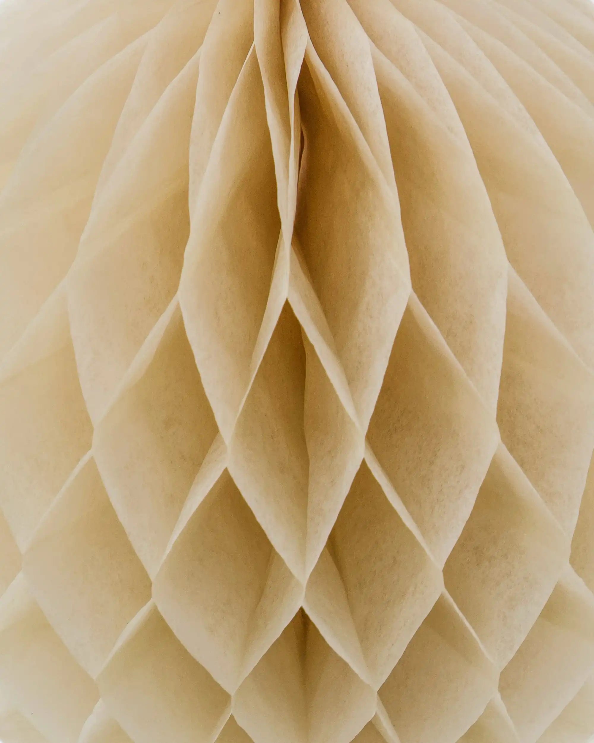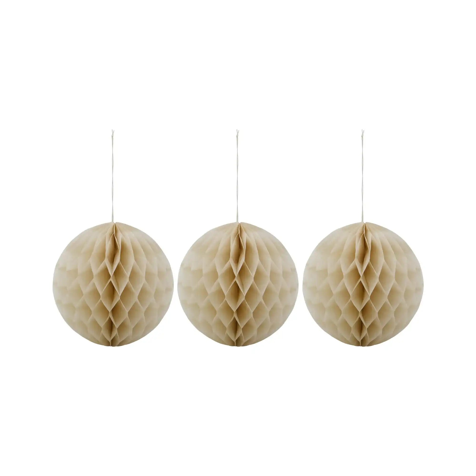 Das Set besteht aus drei handgefertigten Ornamenten aus 100% Papier. Jedes Ornament hat eine elegante Wabenstruktur und einen Durchmesser von 12,5 cm. Die Elfenbeinfarbe sorgt für eine ruhige und raffinierte Ausstrahlung, die mühelos zu verschiedenen Stilen und Farbschemata passt.