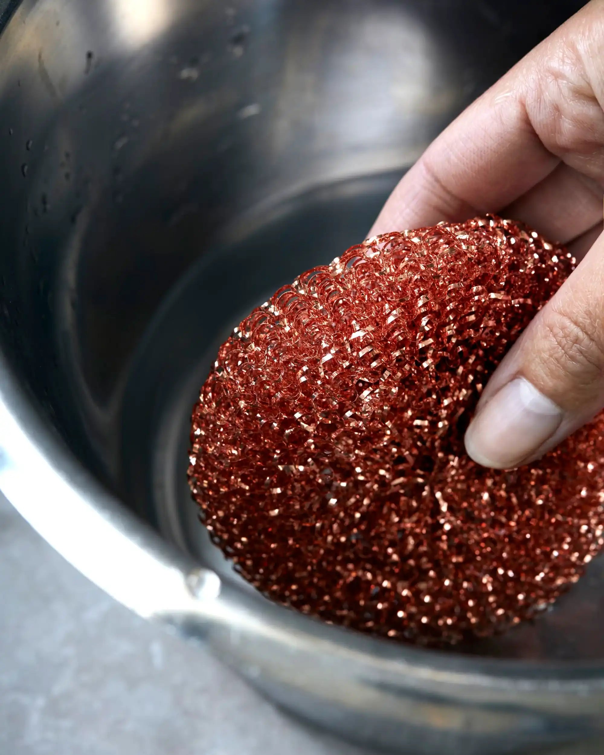 Dieses Set besteht aus drei robusten Scheuerschwämmen, die komplett aus Kupfer gefertigt sind. Dank dieses weichen Metalls entfernst du mühelos Schmutz von empfindlichen Oberflächen, ohne Kratzer zu hinterlassen. Jeder Schwamm hat einen Durchmesser von 9 cm und ist 2,5 cm hoch – kompakt genug, um ihn neben dem Spülmittel aufzubewahren, und auffällig genug, um gesehen zu werden.